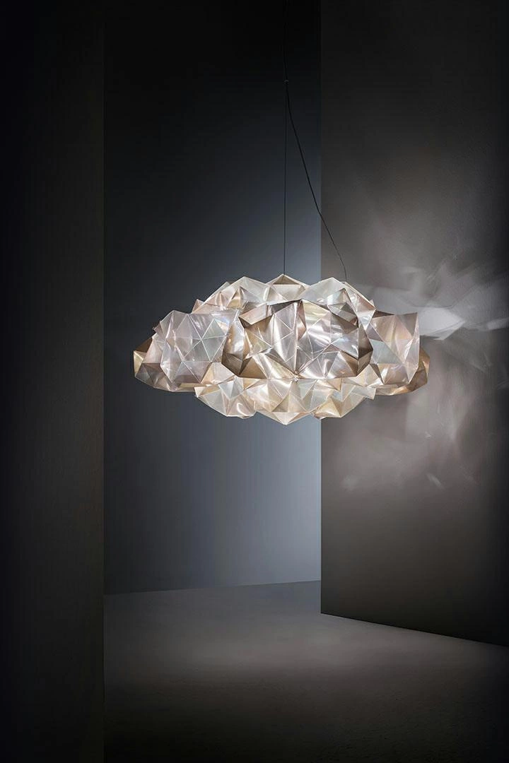 Závěsné svítidlo Drusa Velvet zlatá LED 4-bodové od značky SLAMP S.P.A. je ideální volbou pro ty, kteří hledají moderní osvětlení s unikátním, nepravidelným tvarem. Vyniká elegantním zlatým provedením, čtyřmi LED zdroji světla (E27, 12W) a působivou šířkou 64 cm, díky čemuž se stává výraznou dekorací nad jídelním stolem, v obývacím pokoji nebo jídelně. Lehká, ale zároveň odolná konstrukce z kvalitního plastu zaručuje, že lampa perfektně zapadne do moderních i glamour interiérů.
