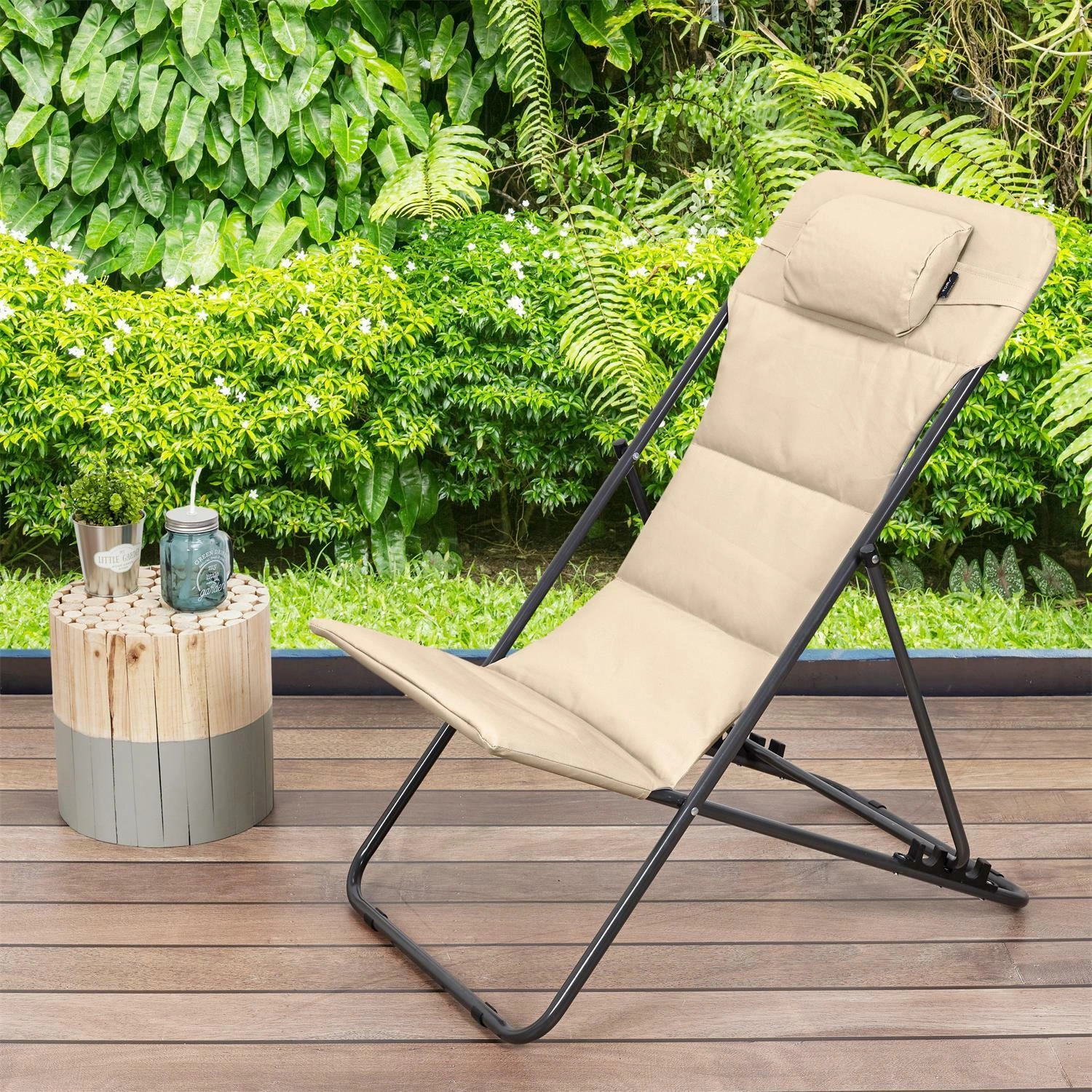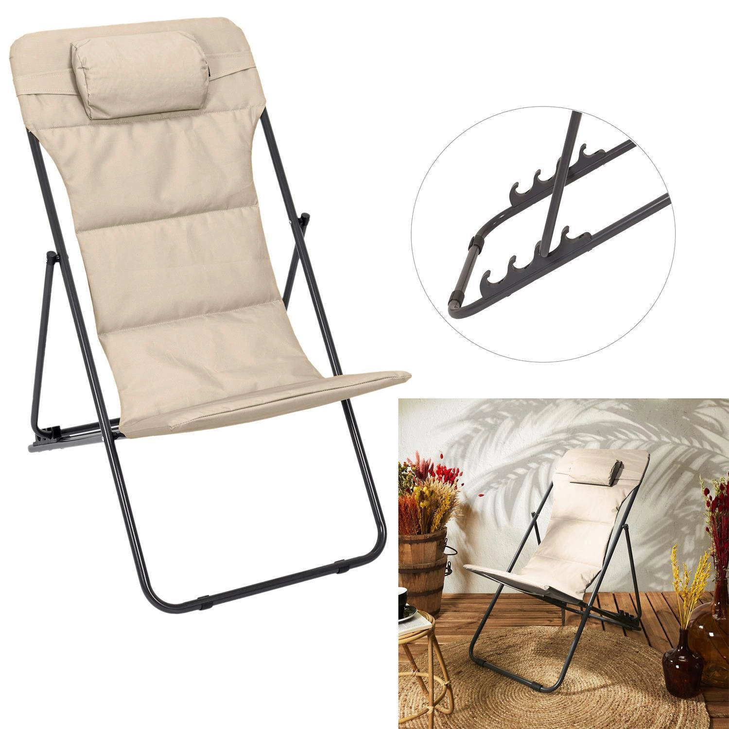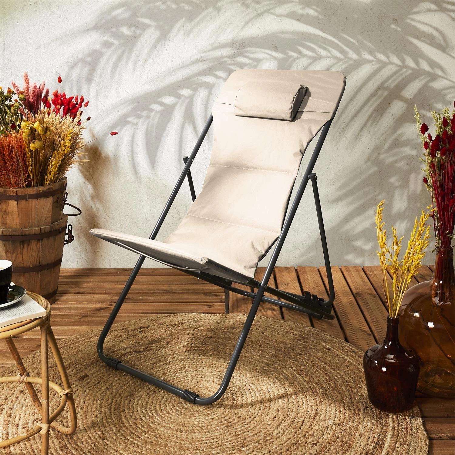 Zahradní lehátko Grue béžové od značky Ventos je ideální volbou pro ty, kteří ocení moderní styl, pohodlí a praktičnost. Skládací konstrukce, odolná kovová základna v elegantní černé barvě a béžové sedadlo z trvanlivé tkaniny zaručují, že tento model perfektně zapadne jak na terasu, do zahrady, tak i k relaxaci na pláži. Nastavitelné opěradlo s možností regulace úhlu umožňuje individuální nastavení polohy, což zajistí maximální komfort i při dlouhém odpočinku.