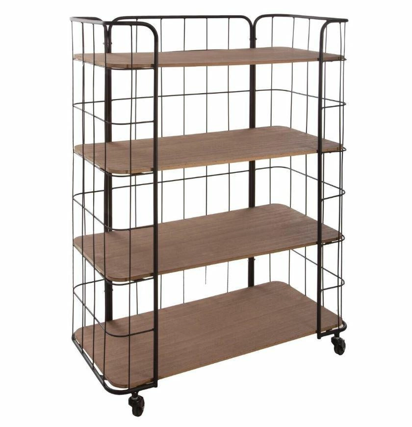 Hledáte stylový úložný prostor, který je pohodlný a flexibilní? Vyberte si jedinečnou knihovnu Jordi. Tento poutavý design je ideální jak do spíže a kuchyně, tak i do jiných interiérů. Tento mimořádně stylový kousek je vyroben z MDF a kovový rám mu dodává industriální vzhled, který je v moderních interiérech velmi oblíbený. Díky 4 policím získáte dostatek úložného prostoru prakticky na vše, co potřebujete, a zároveň ušetříte část místa na pracovní desce. Můžete ji dokonce použít jako elegantní výstavní knihovnu! Díky čtyřem kolečkům ji můžete snadno přemisťovat a měnit tak uspořádání interiéru.