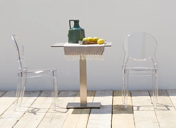 Židle je vyrobena z odolného plastu, konkrétně z polykarbonátu. Materiál židle umožňuje její použití v interiéru i exteriéru. A navíc nábytek stohuje, takže v případě potřeby budete moci ušetřit místo (stohuje se až 6ks). Používejte židli Igloo u jídelního stolu, toaletního stolku nebo na balkoně a určitě nebudete litovat!