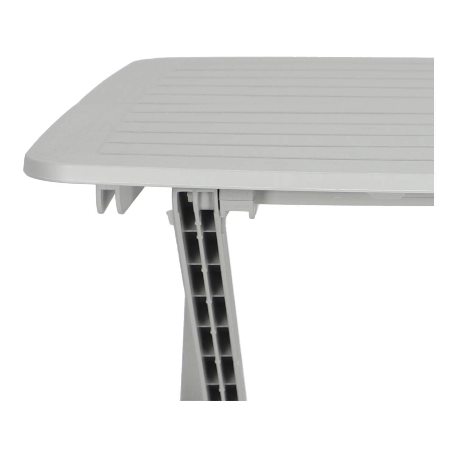 Tento minimalistický a moderní skládací zahradní stůl je ideální na balkon, zahradu nebo restaurační zahrádku. Je vyroben z plastu, konkrétně z extrémně odolného polypropylenu, který se snadno udržuje v čistotě. Stůl lze snadno složit a uskladnit na malém prostoru, navíc je lehký, odolný a odolný vůči povětrnostním vlivům. Díky své šedé barvě Komodo dodá vašemu venkovnímu prostoru elegantní akcent. Užijte si stolování venku s rodinou a přáteli s tímto stylovým a zároveň praktickým kusem zahradního nábytku.