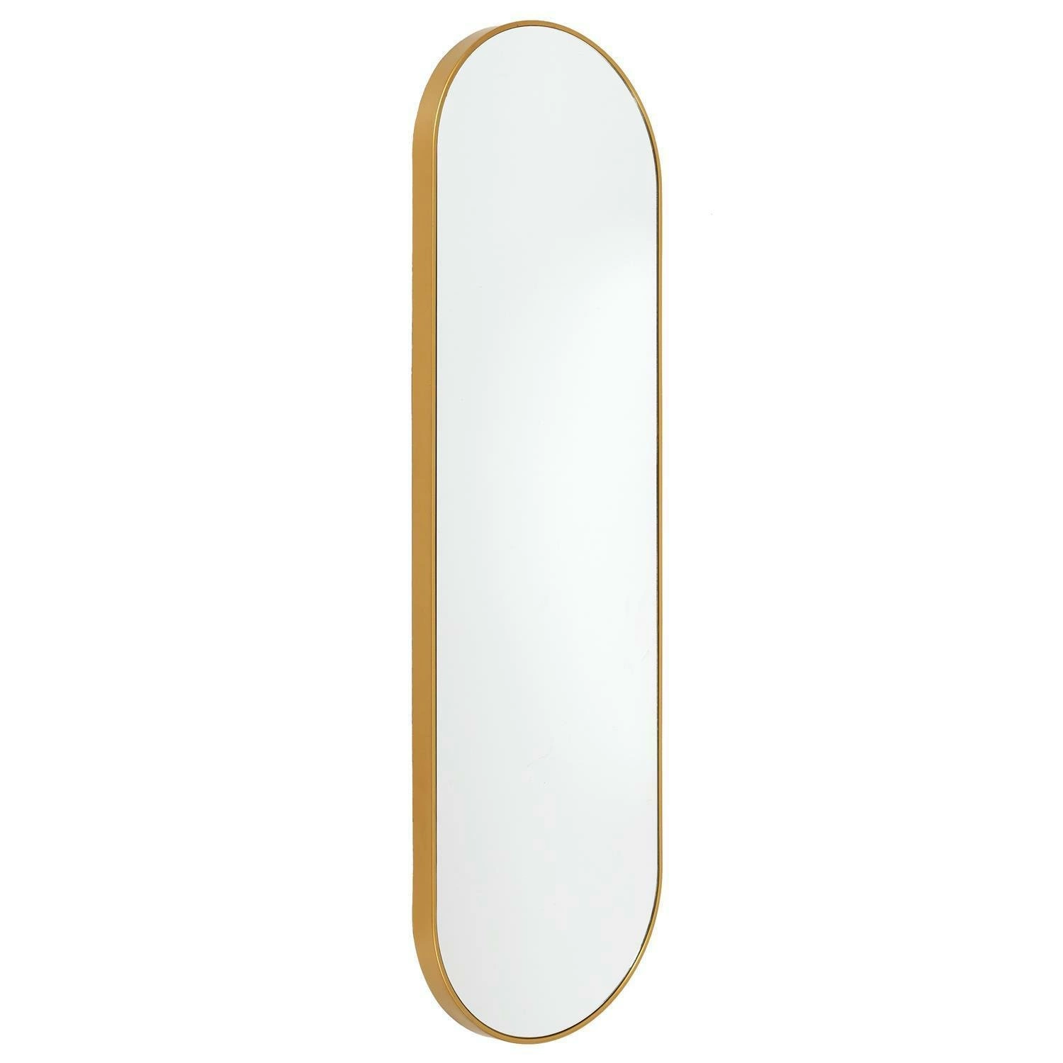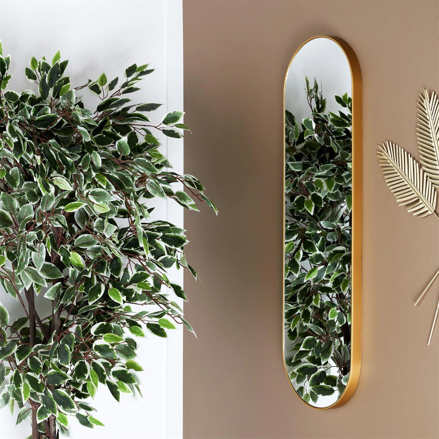 Oválné zrcadlo Camomille zlaté závěsné do koupelny a ložnice ve zlatém rámu 100x30 cm