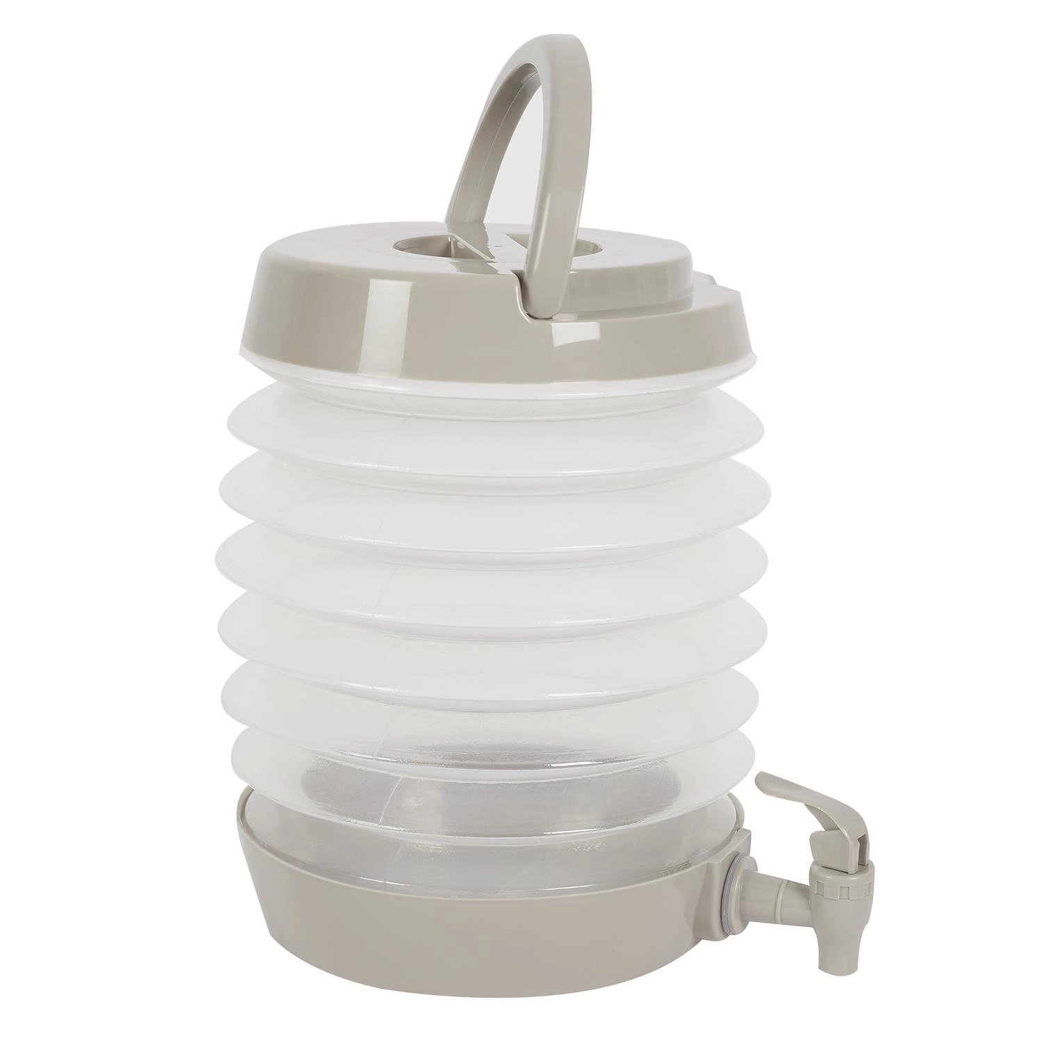 Tento mimořádně praktický výrobek je vyroben z plastu, díky čemuž je lehký, odolný a snadno se udržuje v čistotě. Nádobu lze složit naplocho, abyste ušetřili místo v kuchyni nebo ve spíži. Tím však její výhody nekončí! Nádoba má také praktické držadlo na přenášení a kohoutek pro snadné nalévání nápojů.