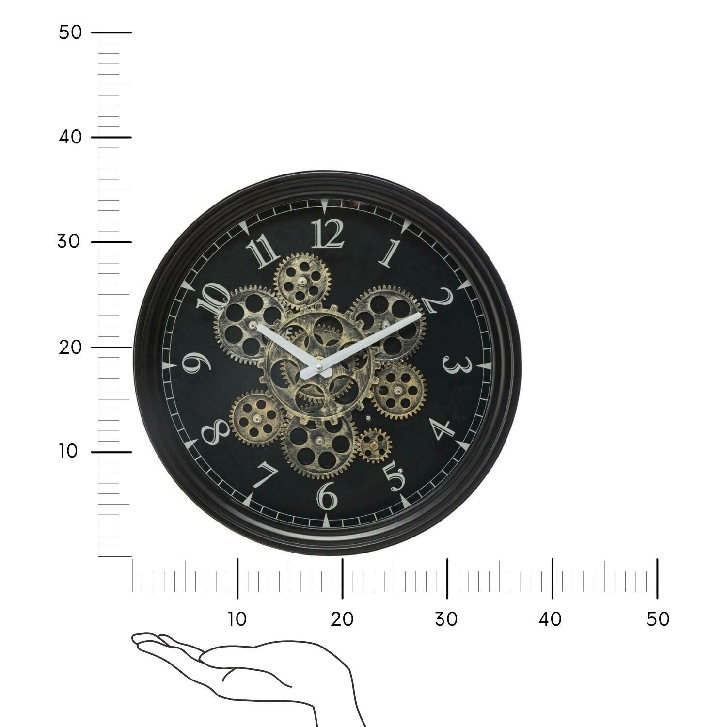 Nástěnné hodiny Meca jsou ideální volbou pro milovníky originálních bytových doplňků. Kovové detaily a dekorativní zlatá ozubená kola tvoří harmonický celek inspirovaný designem starých továren, což skvěle zapadá do interiérů v loftovém a vintage stylu. Černé provedení s elegantními zlatými akcenty podtrhuje luxus a jedinečnost a dělá z hodin dekoraci, která upoutá pohled a dodá interiéru osobitý charakter.