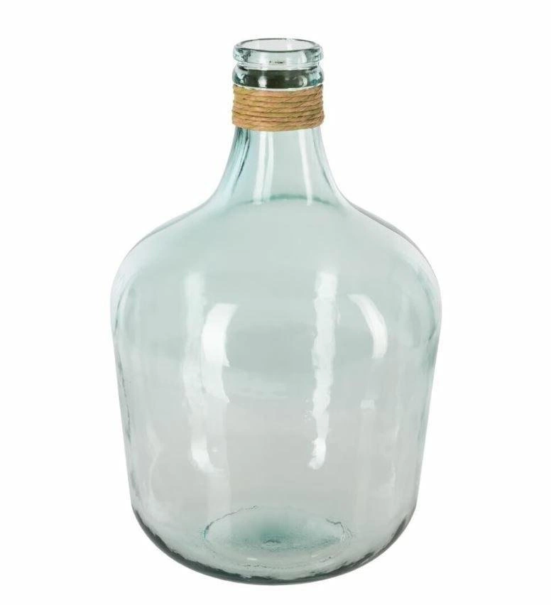 Tato skleněná váza je dokonalou dekorací pro váš domov! Váza zdobená pletenou rafií na hrdle připomíná starou sklenici na víno, což jí dodává rustikální kouzlo.