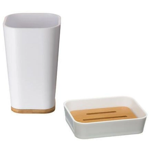 Sada je vyrobena z kombinace plastu a bambusu, takže nejen krásně vypadá, ale také se snadno čistí a je hygienická. Přírodní materiál bambusu dodá vaší koupelně eleganci a styl. Držák na zubní kartáčky a miska na mýdlo vám pomohou uspořádat a udržet pořádek. S touto sadou můžete snadno udržovat pořádek v koupelně a pomůcky pro osobní hygienu vždy na svém místě.
