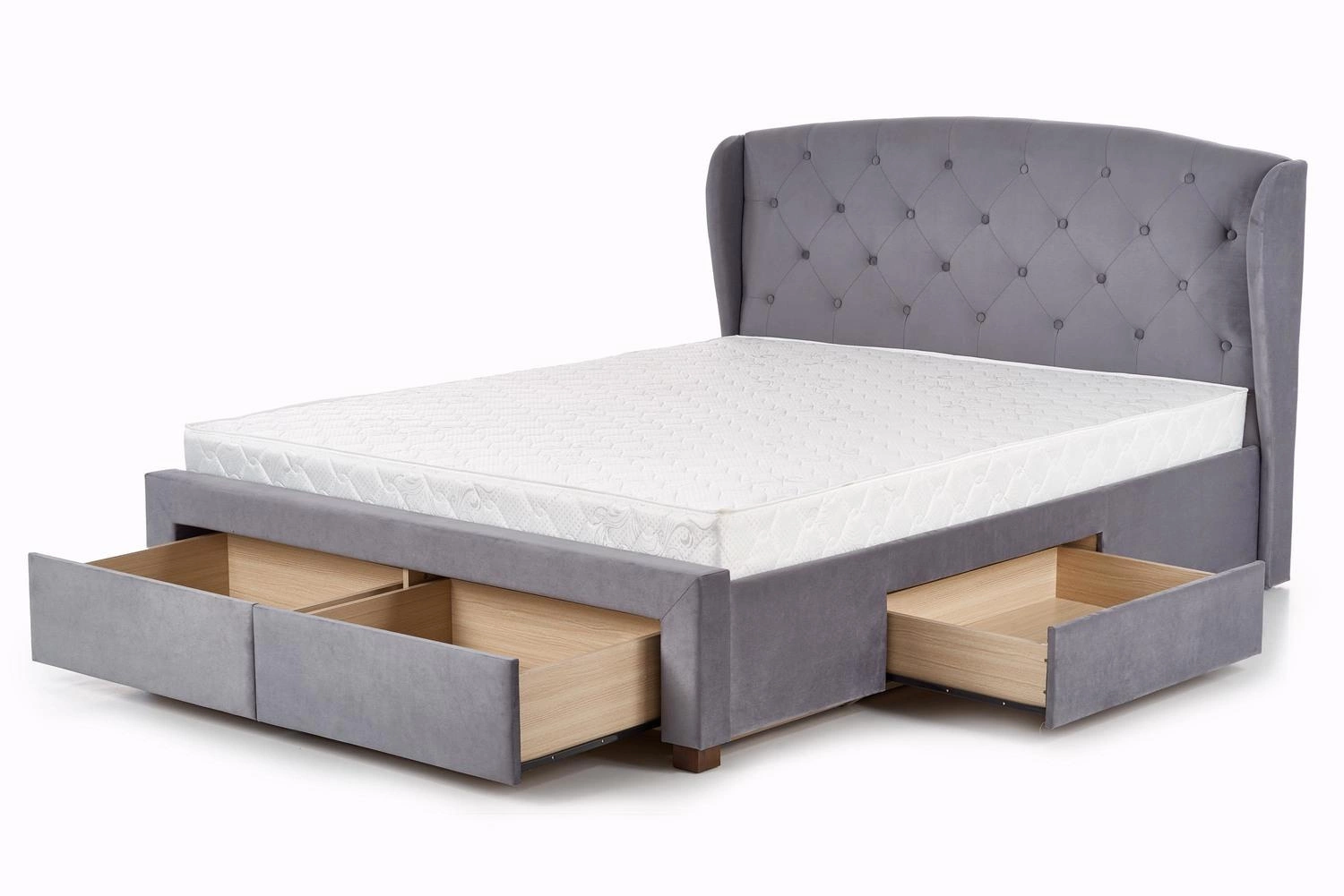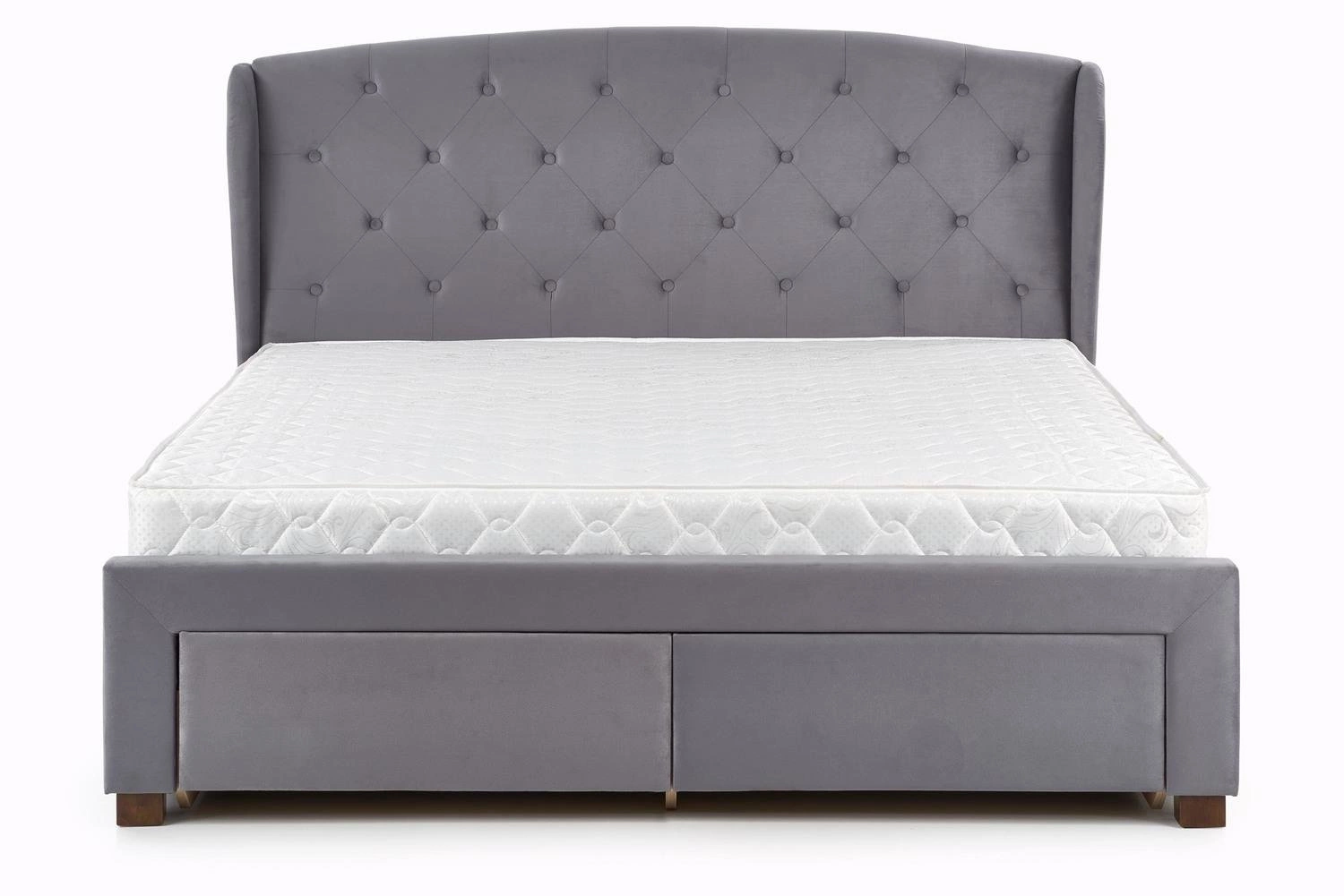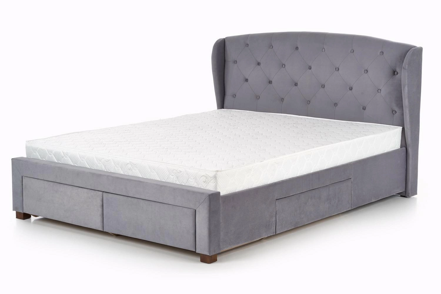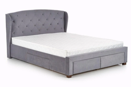 Čalouněná postel Saba 160x200 šedá je ideální volbou pro ty, kdo hledají eleganci a funkčnost do ložnice. Vysoké, prošívané čelo, čtyři prostorné zásuvky na lůžkoviny a pevná konstrukce z masivního dřeva spojují glamour styl s praktickým využitím. Široká spací plocha 160x200 cm zaručuje pohodlný odpočinek pro dva.