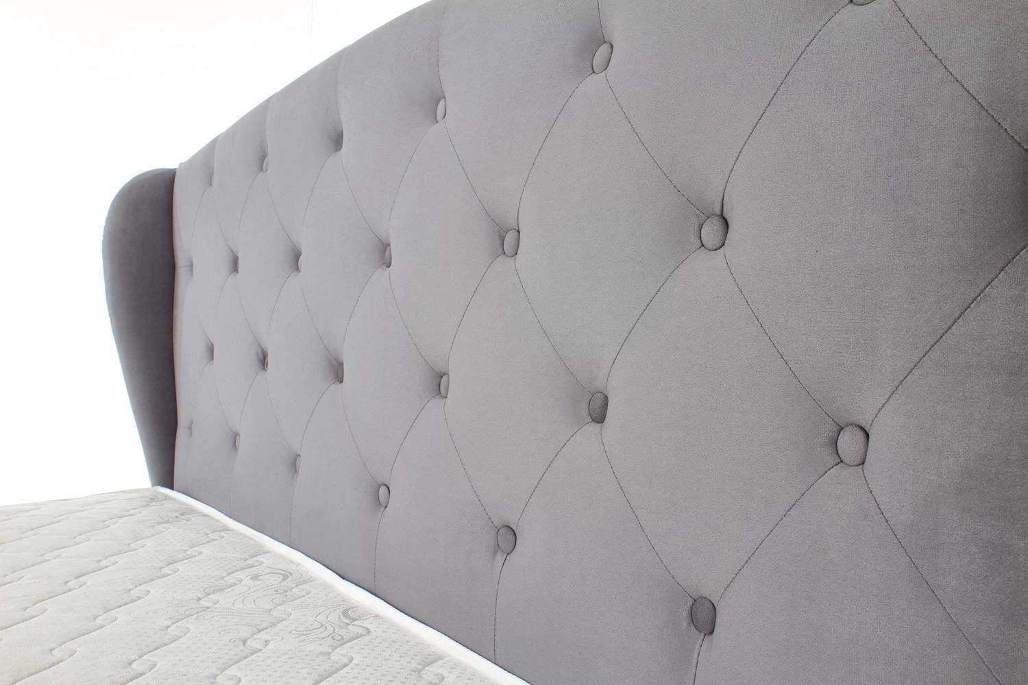 Postel Saba v šedém provedení je esencí glamour stylu. Jemně lesklá čalouněná látka krásně ladí s dekorativním, vysokým čelem, které zaujme efektním prošíváním. Tento elegantní design činí z postele středobod ložnice a dodává jí jedinečný charakter a luxusní atmosféru. Skvěle se hodí jak do klasických, tak i moderních interiérů a vytváří prostředí ideální pro relaxaci.