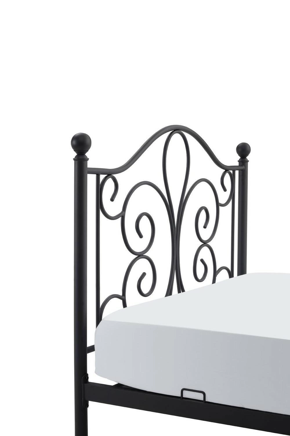 Kovová postel Tala 90x200 je moderní, černý kus nábytku do ložnice, který spojuje minimalistický design s každodenním komfortem. Je vyrobena z odolné oceli s lesklým povrchem, což zajišťuje stabilitu a vysokou odolnost proti poškození. Vysoké nohy umožňují snadný přístup robotickému vysavači, a díky obdélníkovému tvaru a kompaktní šířce 94 cm je tato postel ideální volbou do menších ložnic, studentských pokojů nebo pokojů pro hosty.