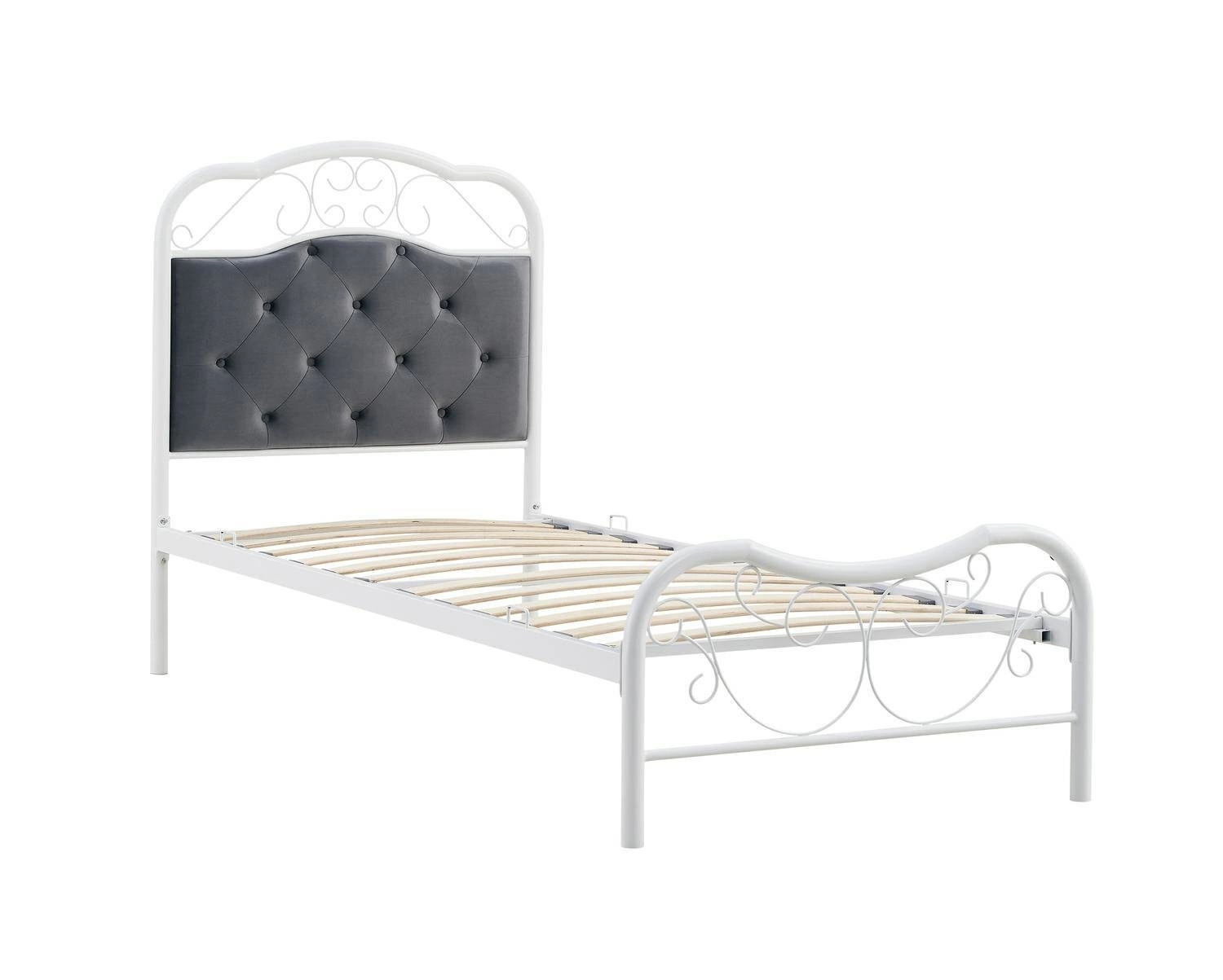 • Konstrukce postele je vyrobena z vysoce kvalitních materiálů, jako je sametová tkanina a práškově lakovaná ocel, což zaručuje odolnost a pevnost nábytku.