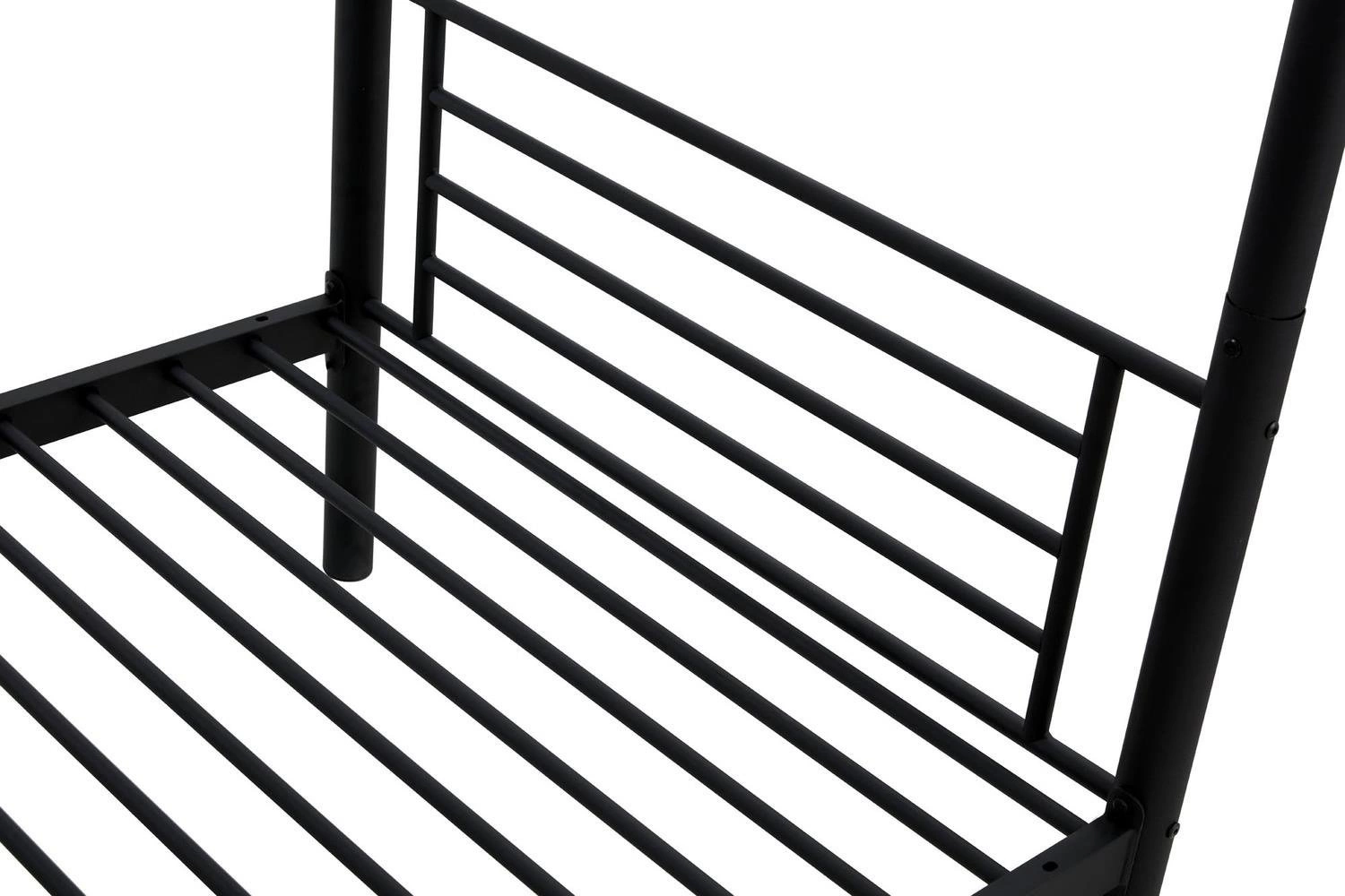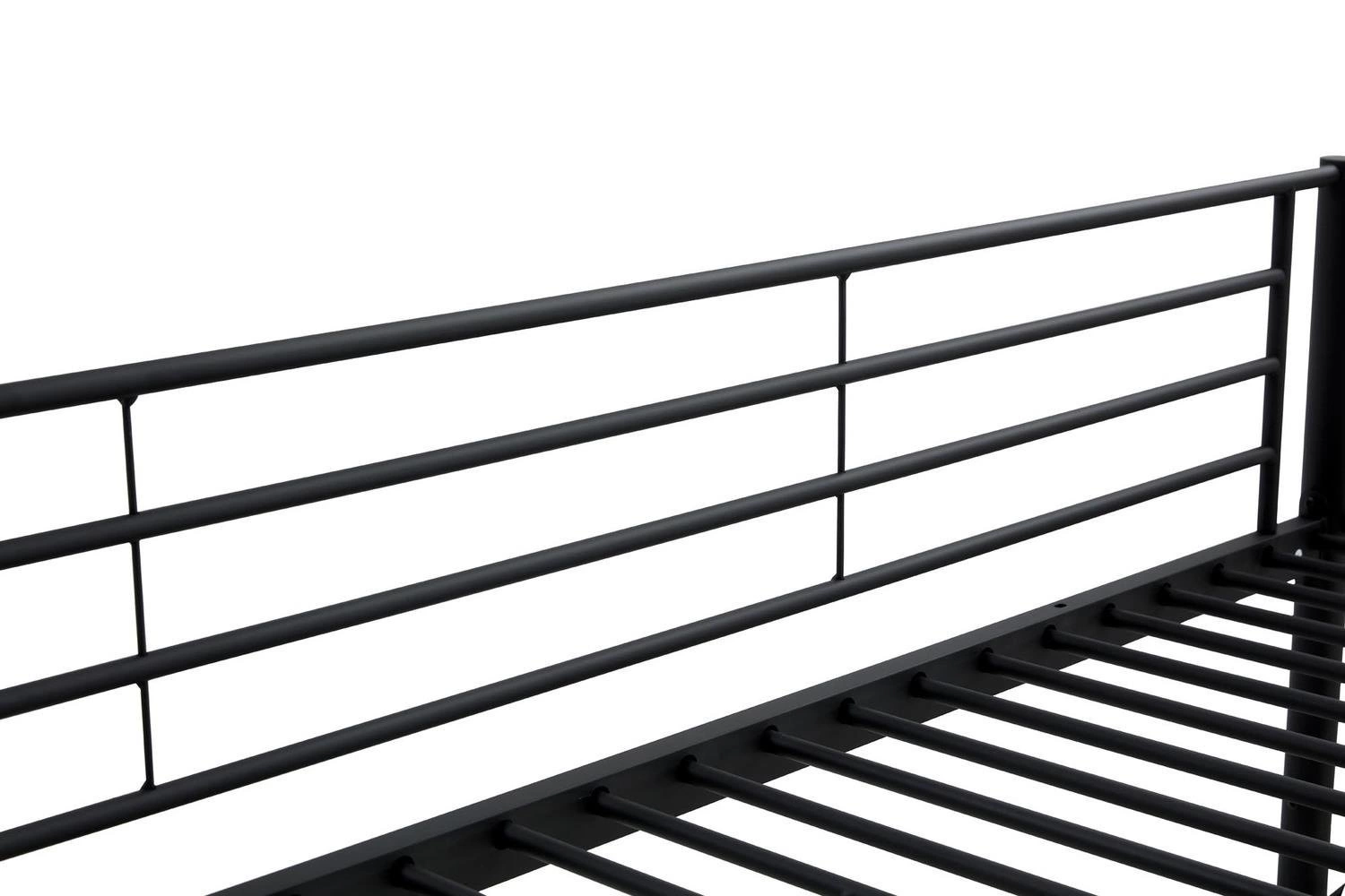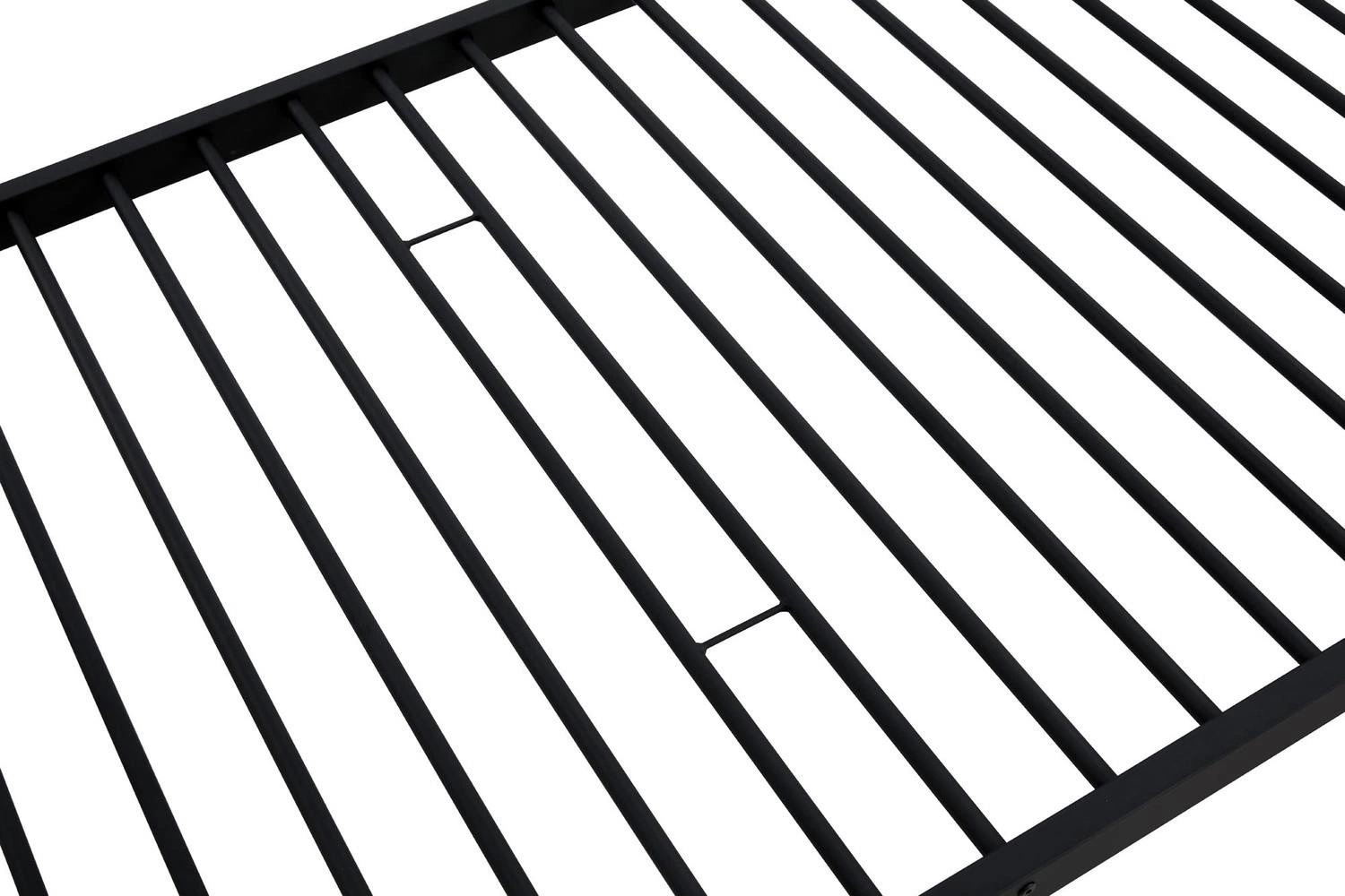 Černý kovový rám postele zaručuje spolehlivost na dlouhá léta a nadčasový vzhled, který snadno sladíte s dětským nebo studentským pokojem. Precizní zpracování detailů a pečlivě zaoblené hrany zvyšují bezpečnost při používání – což je zvlášť důležité u nábytku pro nejmenší. Kovová konstrukce je odolná proti poškození a snadná na údržbu, což výrazně usnadňuje každodenní péči o postel.