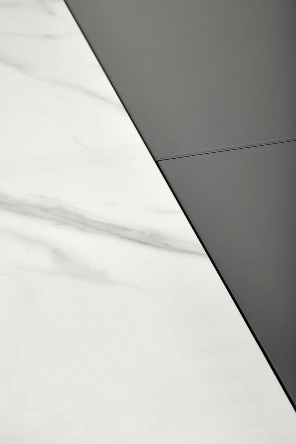 Deska stolu je vyrobena z keramiky, což zaručuje její trvanlivost a odolnost proti poškození. Tento materiál se navíc snadno udržuje v čistotě, takže si stůl déle zachová svůj elegantní vzhled. Noha stolu je vyrobena z práškově lakované oceli, která zajišťuje stabilitu a odolnost konstrukce. Stůl Dallas se dodává ve dvou barvách - bílý mramor na horní desce a světlý jasan na podnoži. Díky tomu jej můžete sladit s vaším interiérem a vytvořit ucelené uspořádání.