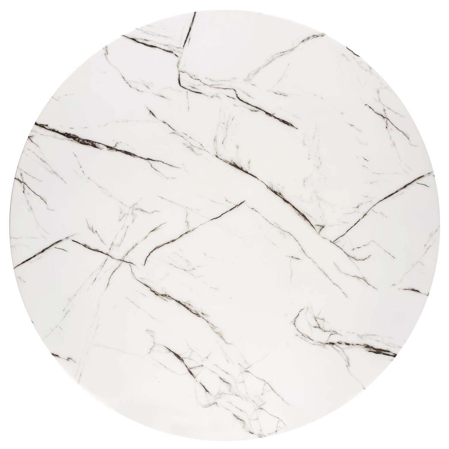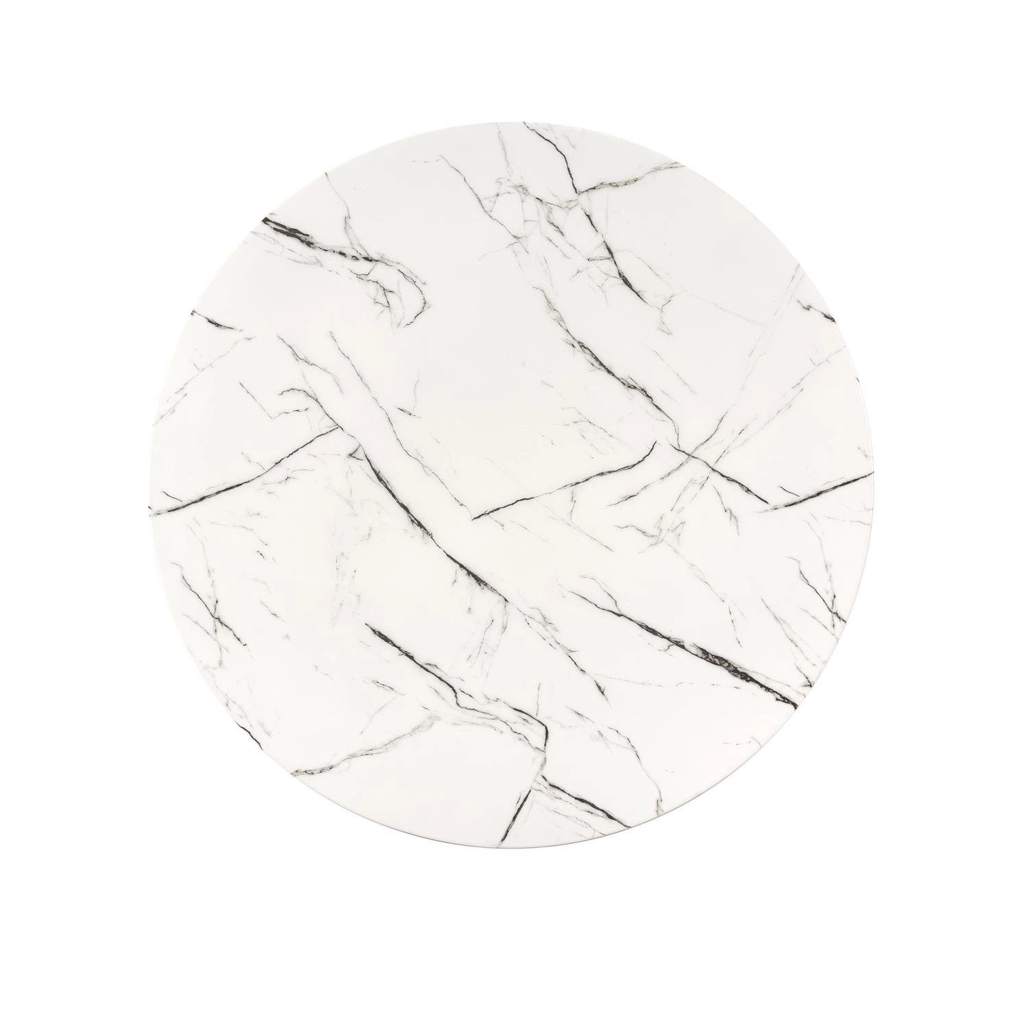 Kulatý skleněný stůl Amber od značky Intesi je ztělesněním moderní elegance ve stylu glamour – ideální volba do jídelny, kuchyně nebo stylové kavárny či restaurace. Kulatá deska o průměru 100 cm je vyrobena ze skla s povrchem v bílé barvě mramoru, který zaujme svým jemným leskem a ušlechtilým odstínem. Celý stůl stojí na stabilní zlaté kovové podnoži, která podtrhuje luxusní charakter nábytku a zároveň zajišťuje dlouhou životnost.