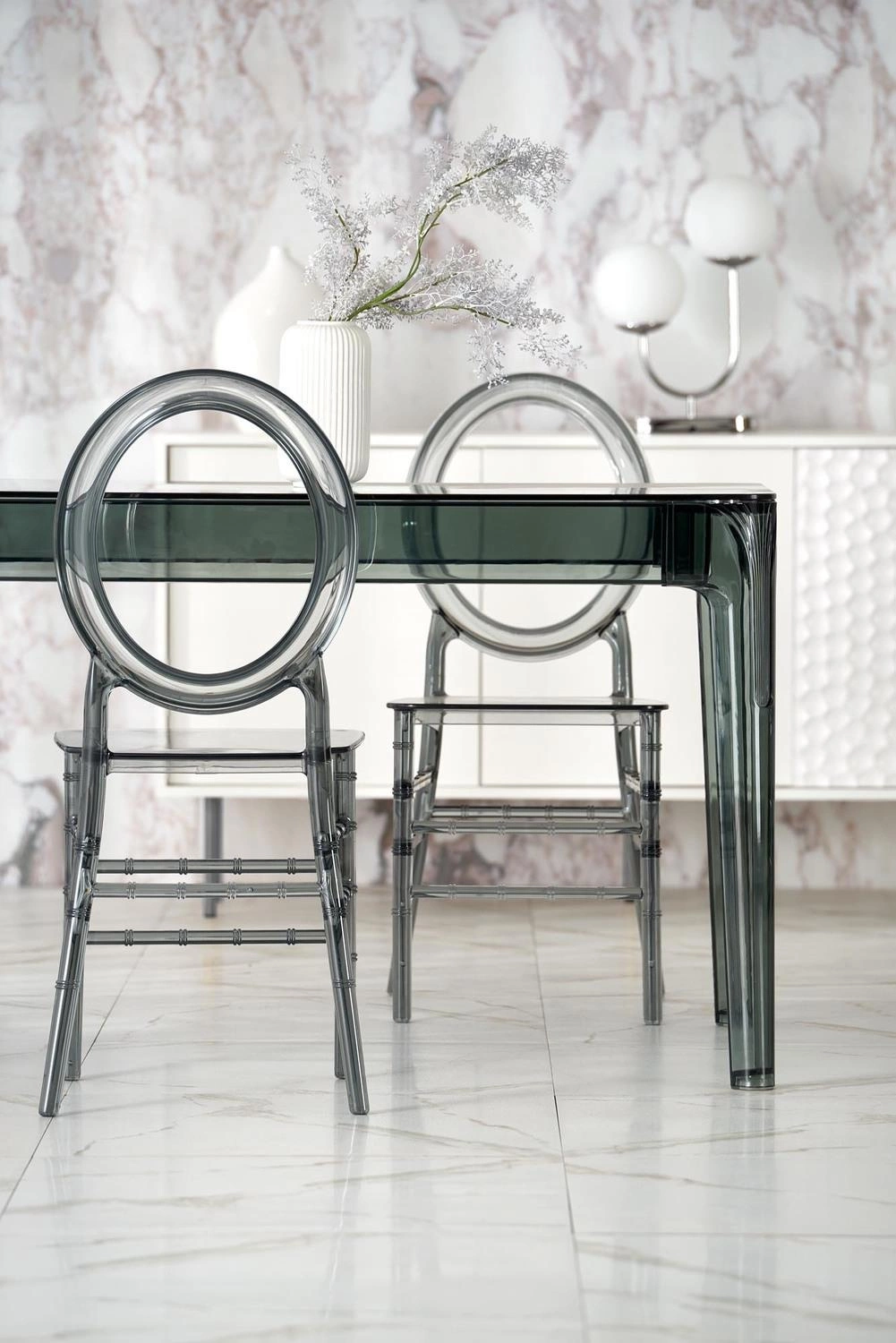 Působivý skleněný povrch v kouřovém tónu dodává celému stolu rafinovaný charakter a skvěle zapadá do glamour stylu i současných aranžmá. Transparentní stůl Lord opticky zvětšuje prostor, což oceníte především v menších místnostech nebo otevřených obývacích pokojích. Tento nábytek nedominuje prostoru, ale zvýrazňuje jeho charakter a stává se decentní, přesto výraznou ozdobou každé jídelny nebo kuchyně.