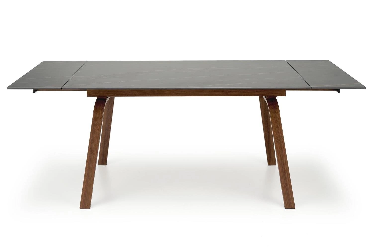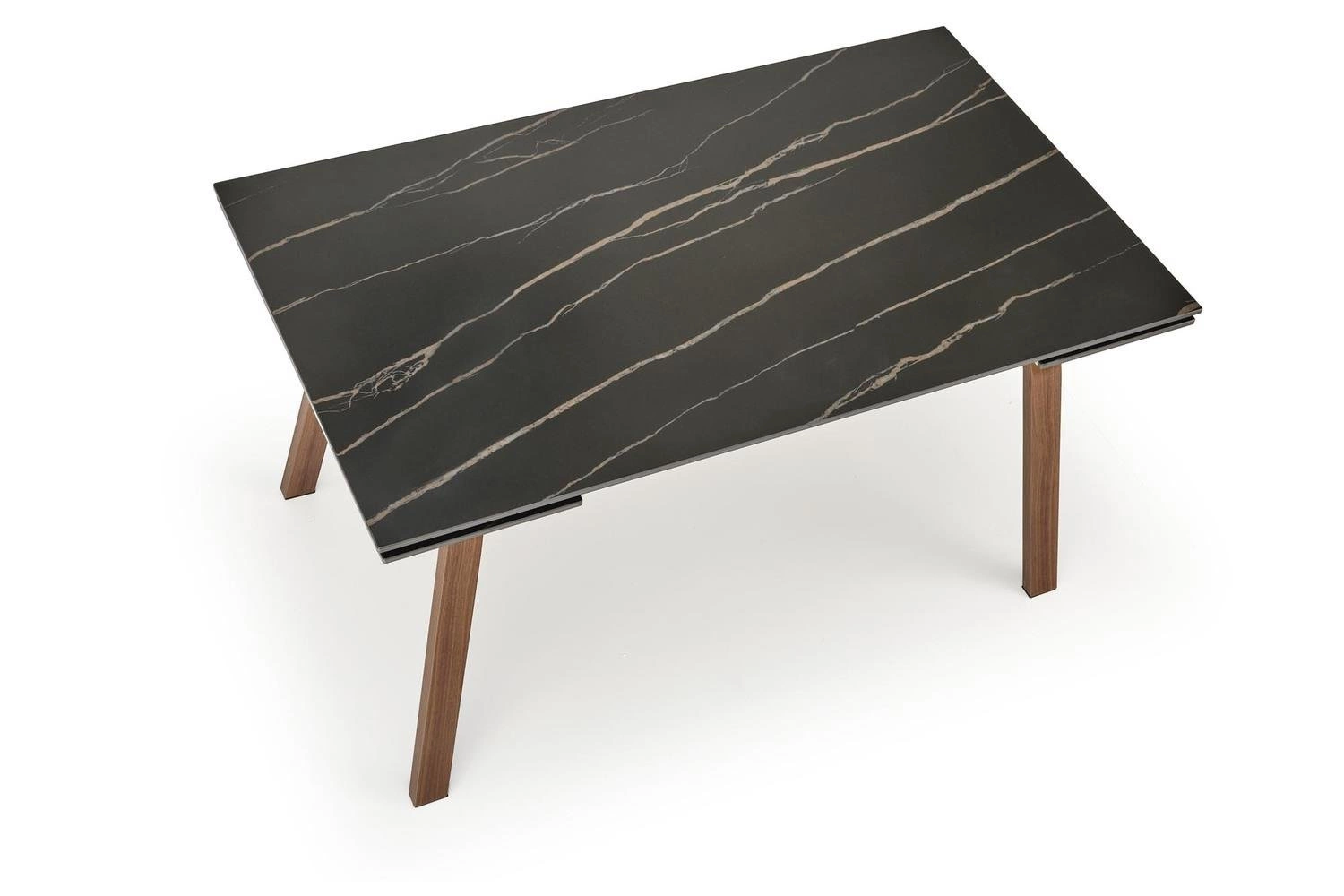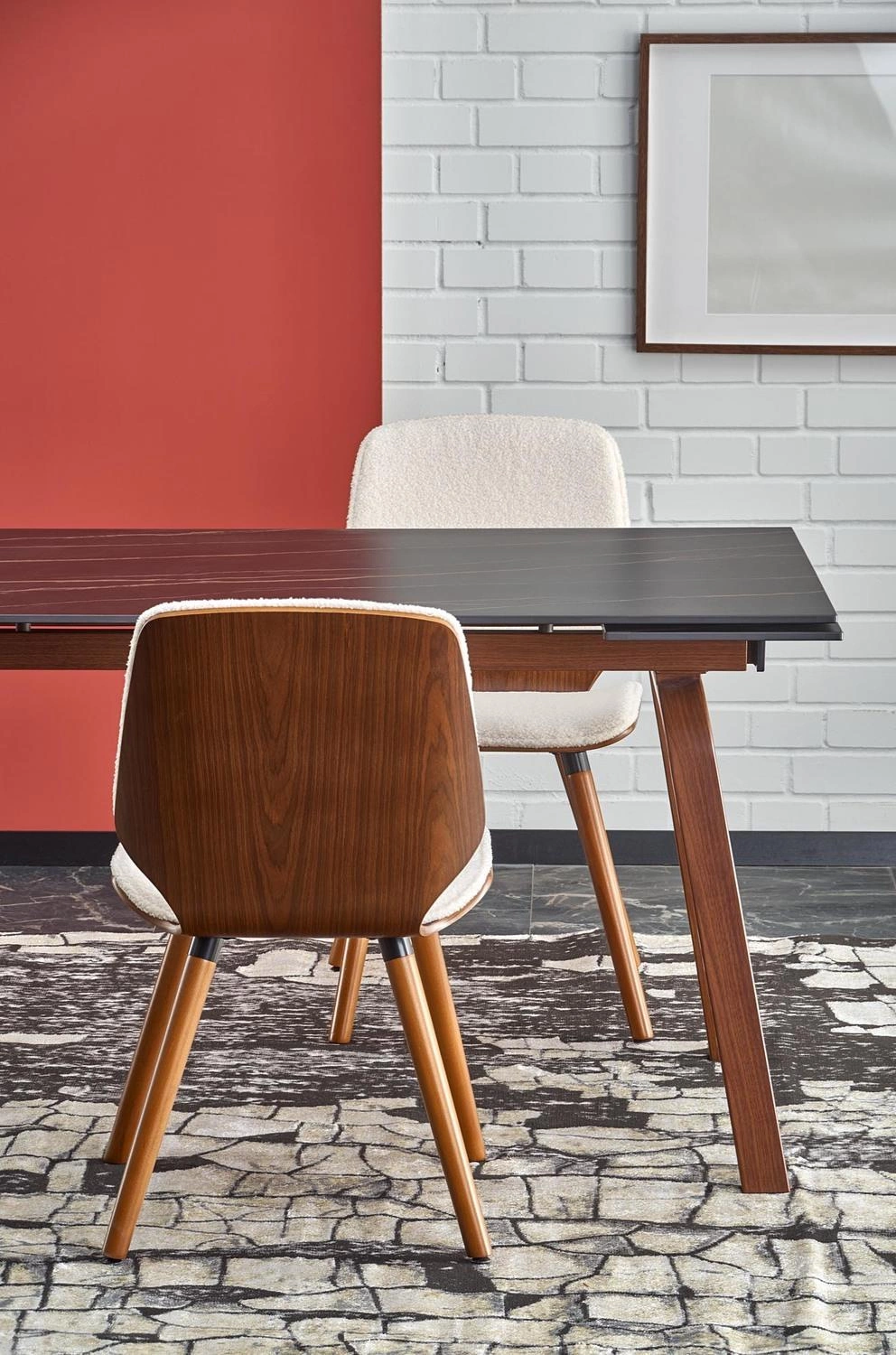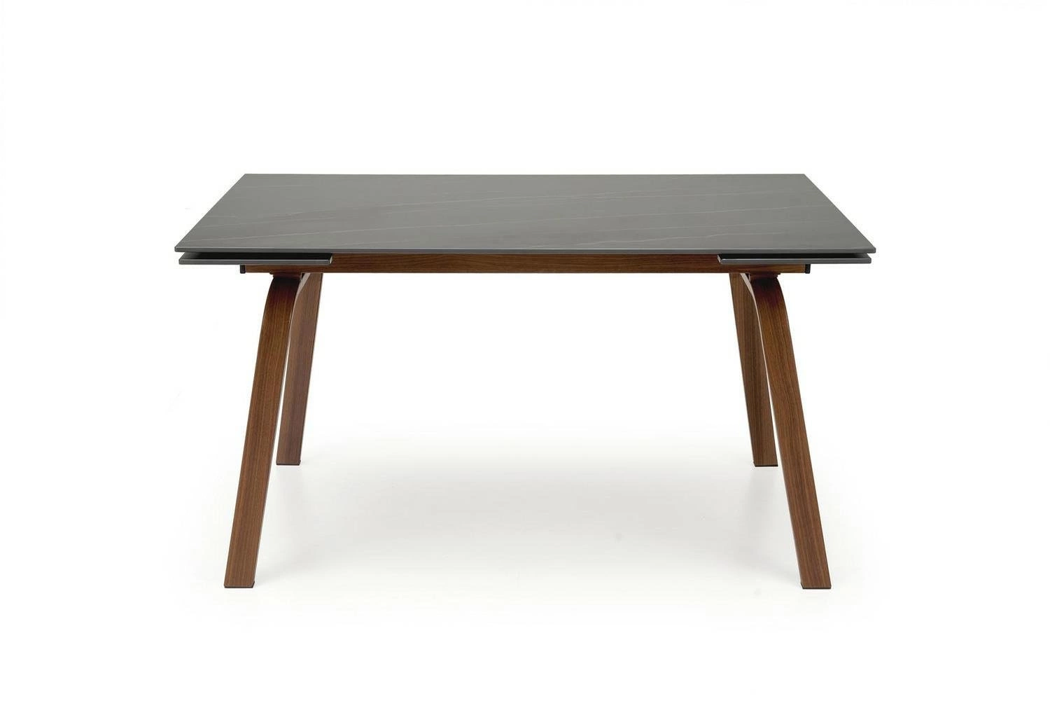 Stůl je vyroben z vysoce kvalitních materiálů, jako je slinutá a práškově lakovaná ocel, což zaručuje dlouhou životnost a odolnost proti poškození. Černá mramorová deska a nohy v barvě ořechu vytvářejí jedinečný design, který jistě potěší každého milovníka moderního stylu. Výška stolu je 76 cm, což umožňuje pohodlné sezení u stolu. Kovový rám zajišťuje stabilitu a bezpečnost používání.