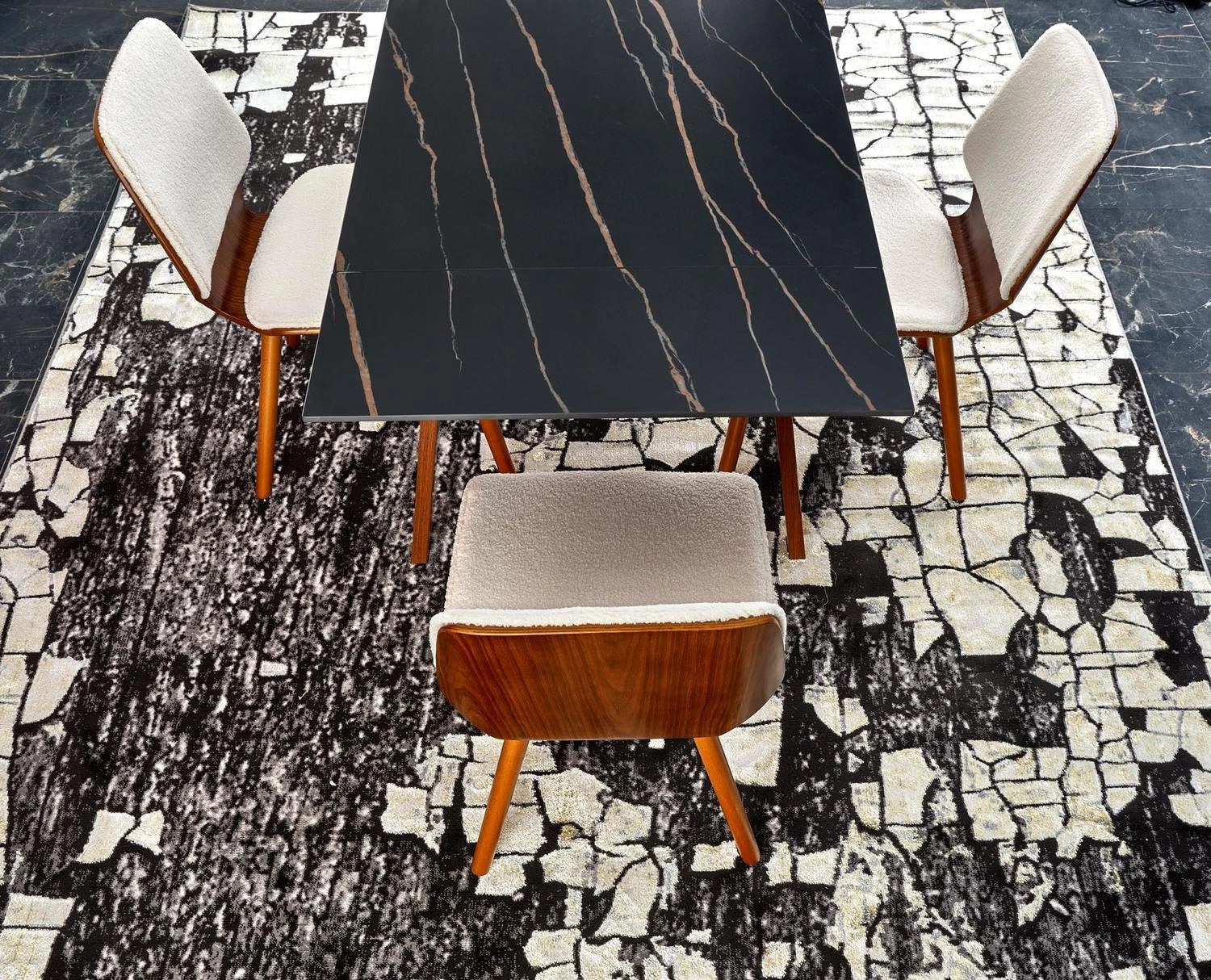 Obdélníková deska stolu, vyrobená ze slinutého materiálu, je nejen odolná, ale také se snadno čistí. Největší výhodou tohoto stolu je však to, že desku stolu lze rozložit, což vám umožní přizpůsobit jeho velikost vašim potřebám. Můžete tak libovolně měnit uspořádání místnosti a přizpůsobit počet míst k sezení počtu hostů. Černý mramorový stůl je nejen funkční, ale také elegantní designový prvek ve vaší domácnosti. Díky modernímu designu a kvalitnímu zpracování vám vydrží dlouhá léta.