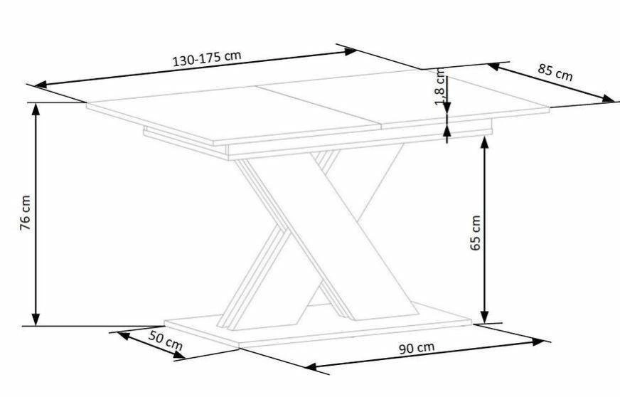 Rozkládací stůl Terol je funkčním řešením pro rodiny i ty, kteří rádi hostí své blízké. V základní verzi má deska délku 130 cm – ideální pro každodenní stolování. Po rozložení se délka zvýší až na 175 cm, což umožní pohodlně pohostit více lidí. Šířka 85 cm poskytuje dostatek prostoru pro servírování jídel a výška 76 cm zajišťuje pohodlí jak pro děti, tak pro dospělé.