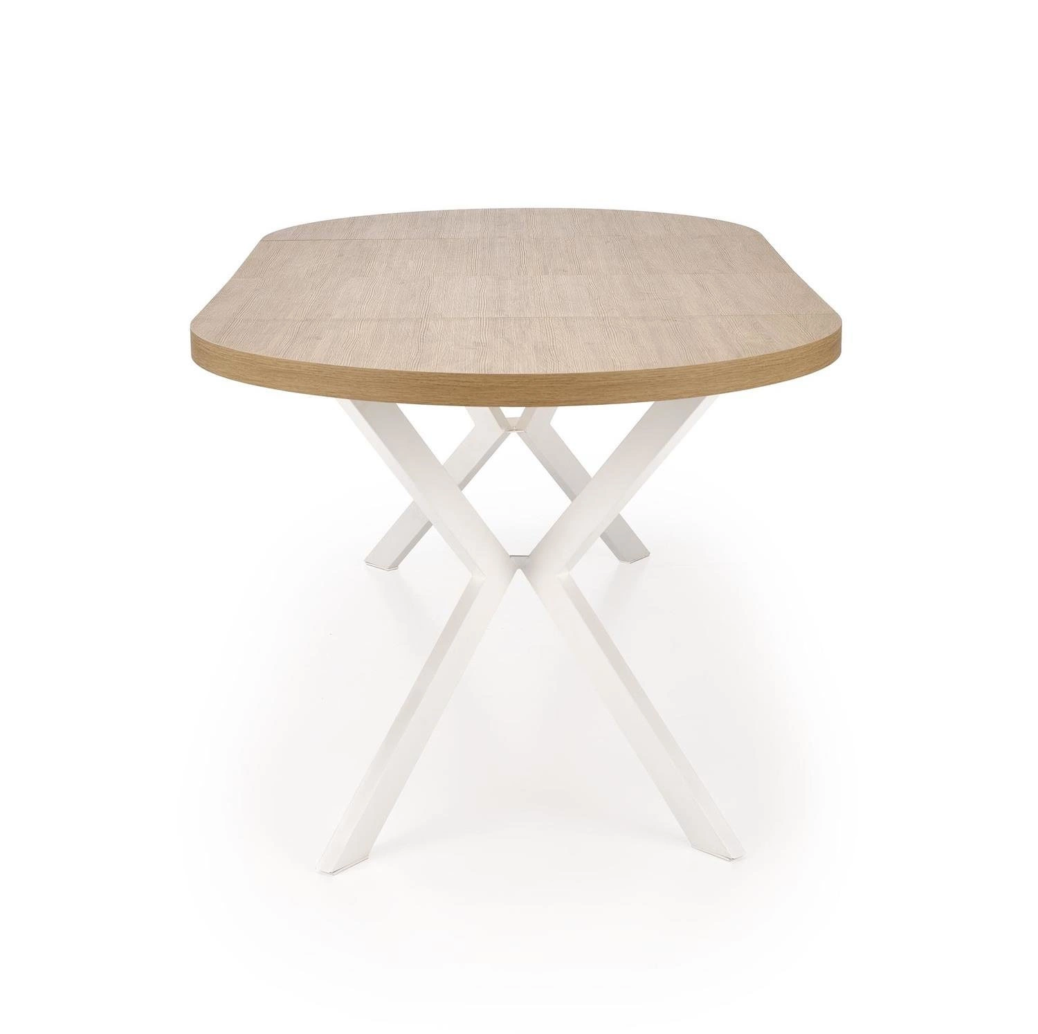 Deska z odolné laminované dřevotřísky v odstínu přírodního dubu je rezistentní vůči každodennímu používání a snadno se udržuje, což ocení každá domácnost. Masivní ocelová konstrukce zajišťuje stabilitu i při maximálním rozložení. Díky výšce 75 cm je stůl pohodlný jak pro každodenní stolování, tak pro práci nebo studium.