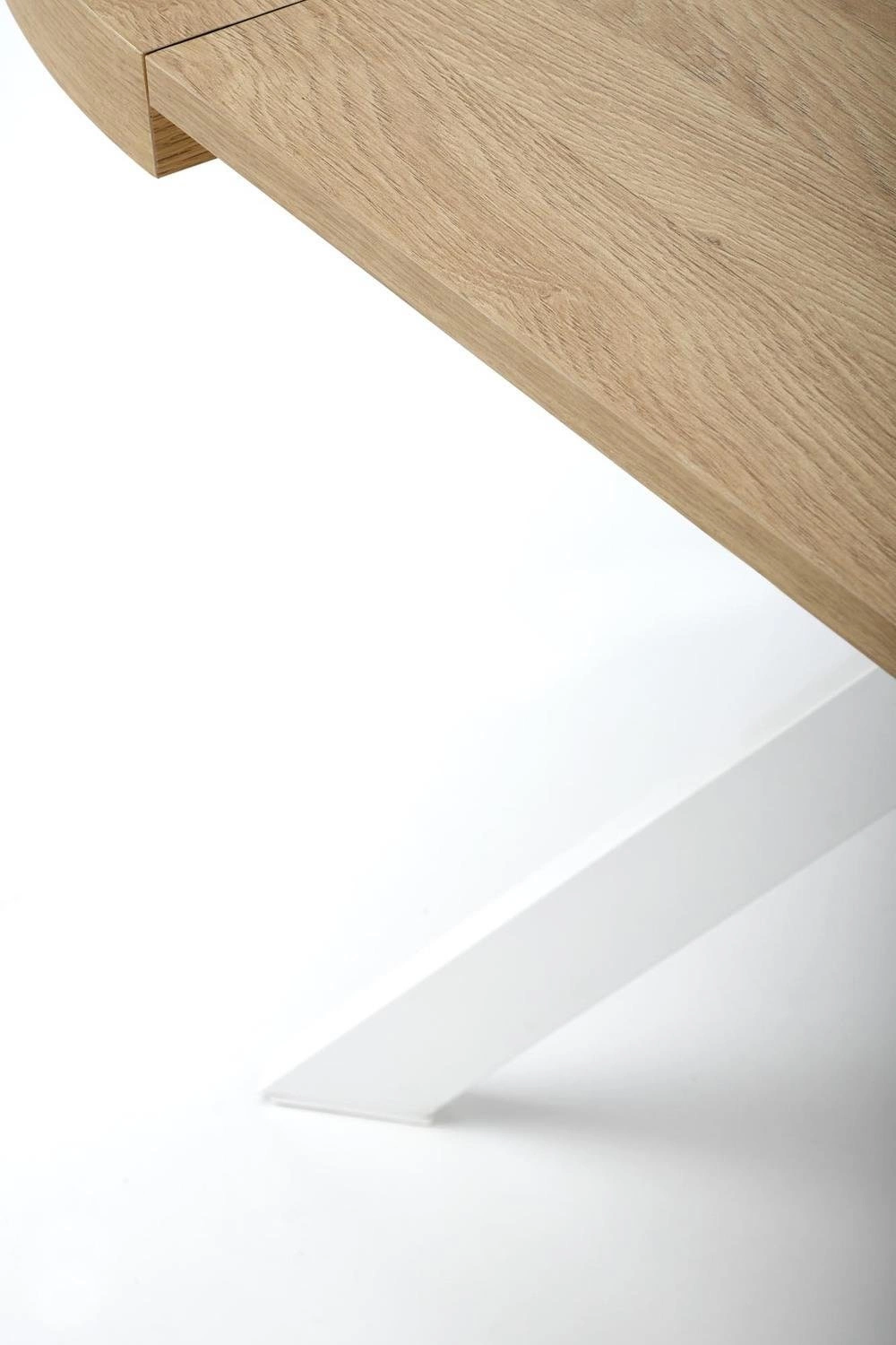 Jedinečné spojení přírodního dubu a bílé kovové podnože dělá z kulatého rozkládacího stolu Roni Intesi výrazný středobod moderního interiéru. Světlé barvy opticky zvětšují prostor a dodávají mu lehkost, zatímco kulatá deska podporuje přirozenou konverzaci a propojuje všechny členy domácnosti. Tento stůl do obývacího pokoje dokonale kombinuje praktičnost s estetikou a zdůrazňuje osobitý styl vašeho bydlení.