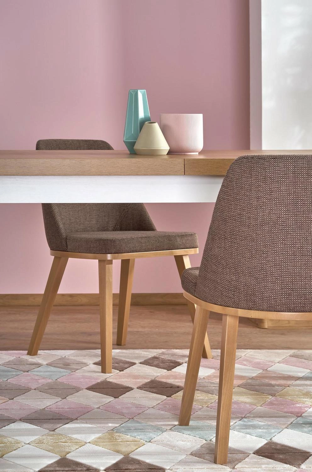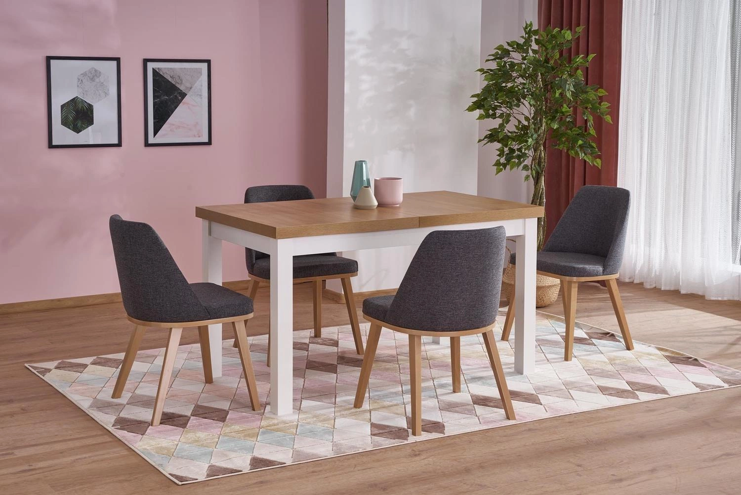 Kombinace světlé desky imitující přírodní dub s bílou základnou je esencí moderního a skandinávského stylu. Stůl Tiago 2 se skvěle hodí do světlých, prostorných interiérů, kterým dodá lehkost a svěžest. Minimalistický tvar a čtyři stabilní nohy zajišťují, že nábytek působí elegantně, aniž by působil masivně. Je to volba pro ty, kdo ocení nadčasový design a chtějí vnést do svého domova útulnou, přírodní atmosféru.