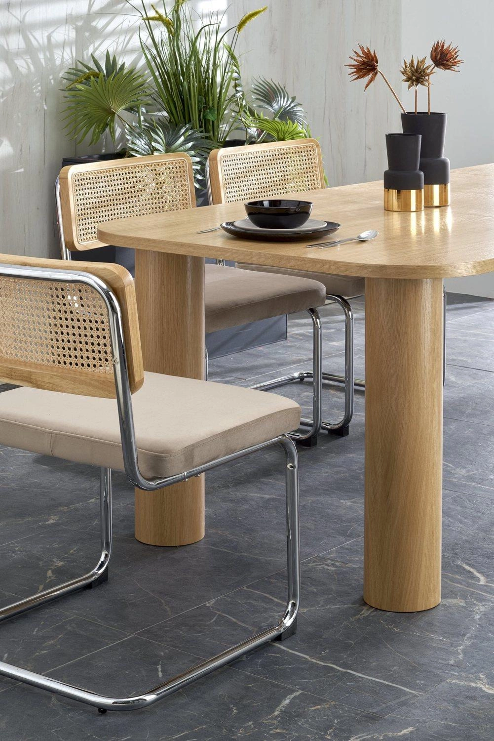 Povrchová úprava stolu v odstínu přírodního dubu vnáší do prostoru útulnou atmosféru a moderní vzhled. Jednoduchá, obdélníková deska a minimalistický tvar odkazují na skandinávský design, díky čemuž se stůl Zilonis skvěle hodí k světlým doplňkům, šedým tónům i sytým barevným akcentům. Přírodní dub je univerzální volbou, která nikdy nevyjde z módy a podtrhne osobitý styl vašeho domova.