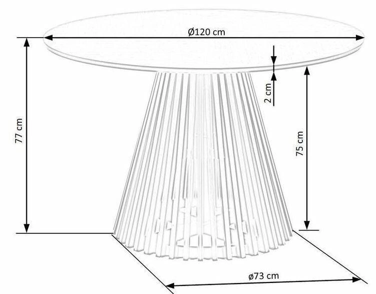 Absence rohů a šířka desky 120 cm zajišťují komfort až pro pět osob. Každý u stolu má tak dostatek prostoru a konverzace probíhají přirozeně a uvolněně. Jedna centrální noha podtrhuje originální design, ale zároveň usnadňuje rozmístění židlí, poskytuje víc místa na nohy a zvyšuje pohodlí při používání.
