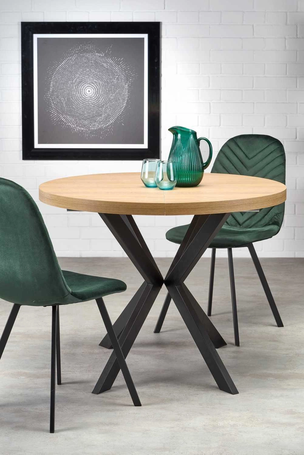 Rozkládací kulatý stůl Roni Intesi 100–250 cm dub zlatý černé nohy moderní jídelní