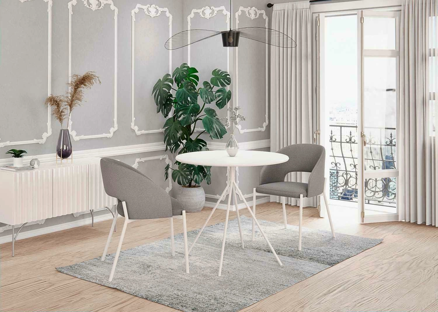 Stůl Difo je ideálním řešením pro ty, kteří oceňují moderní styl a eleganci. Jeho kulatá deska pr.ednica 80 cm poskytne pohodlné posezení třem osobám, takže stůl je ideální volbou do malých místností i kuchyní nebo jídelen. Stůl Difo jevyroben z bíle lakované MDF desky a práškově lakované oceli, což zaručuje dlouhou životnost a odolnost proti poškození .