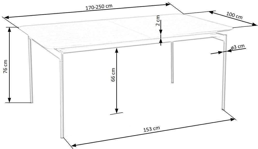 • Rozkládací deska 170–250 cm – snadno přizpůsobíte prostor počtu hostů i příležitosti