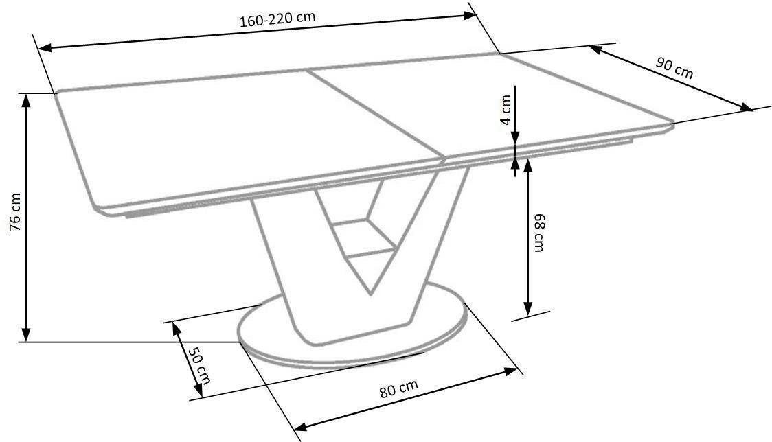 Jednou z největších předností stolu Vermut je možnost rozložení desky ze 160 až na 220 cm, což umožňuje snadno přizpůsobit prostor počtu hostů. V základní délce u stolu pohodlně posedí 6 osob, po rozložení až 8, takže je ideální i pro rodinné oslavy nebo setkání s přáteli. Výška 76 cm a šířka 90 cm zajišťují pohodlí při stolování i dostatek místa pro židle.