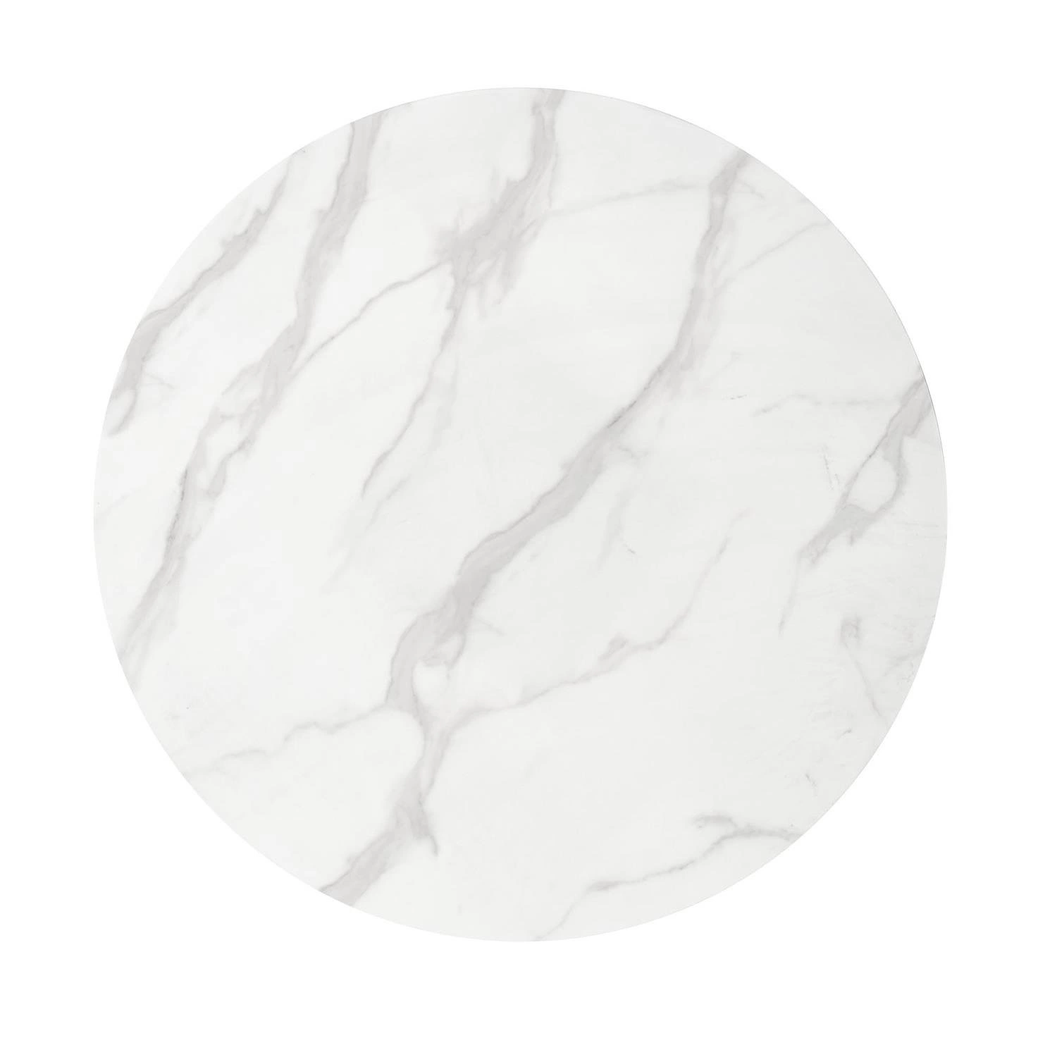 - Kulatá skleněná deska v dekoru bílého mramoru – elegance a jedinečný vizuální efekt