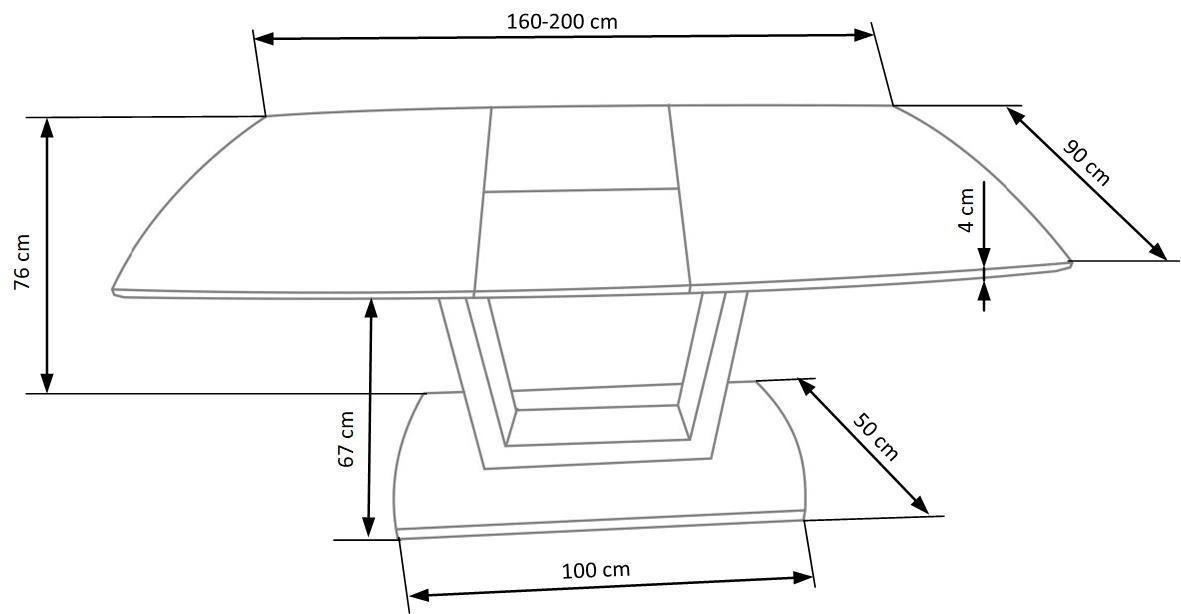 Rozkládací mechanismus umožňuje prodloužit desku z 160 až na 200 cm – díky tomu snadno připravíte slavnostní oběd nebo oslavu pro rodinu a přátele. V běžném provozu kompaktní rozměr stolu šetří místo, během chvilky však získáte extra prostor až pro osm osob. Jedna stabilní noha poskytuje pohodlné rozmístění židlí a neomezuje prostor na nohy, což výrazně zvyšuje komfort používání.