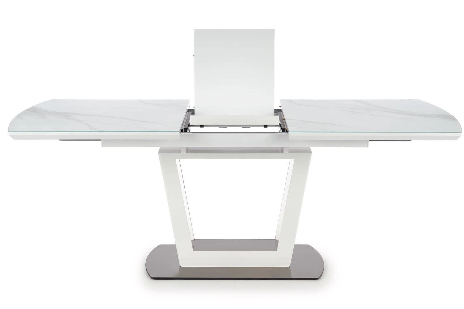 Rozkládací stůl Blani od značky Intesi je moderní glamour nábytek o rozměrech 160–200×90 cm, který zaujme efektivní deskou v dekoru bílého mramoru a stabilní, samostatnou kovovou nohou ve světle šedém odstínu. Jeho obdélníková deska vyrobená ze skla a desky nabízí odolnost, styl a snadnou údržbu. Díky rozkládací funkci je stůl ideální do jídelny, obývacího pokoje nebo prostorné kuchyně – skvěle poslouží jak každý den, tak při větších rodinných setkáních.