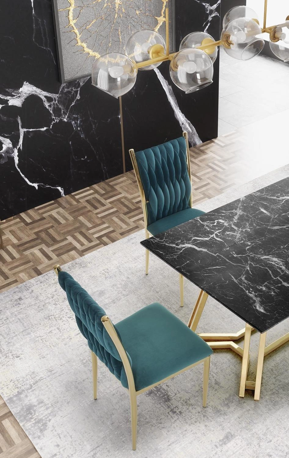 Jídelní stůl Gloria od značky Intesi je ideální volbou pro ty, kteří ocení výraznou eleganci a moderní glamour styl. Kombinuje skleněnou desku v černé barvě imitující mramor s efektní zlatou podnoží na jedné noze. Obdélníková deska o délce 160 cm a hloubce 90 cm nabízí pohodlné místo až pro 6 osob, což činí tento stůl skvělou volbou nejen do jídelny, ale také do obývacího pokoje nebo prostorné kuchyně.