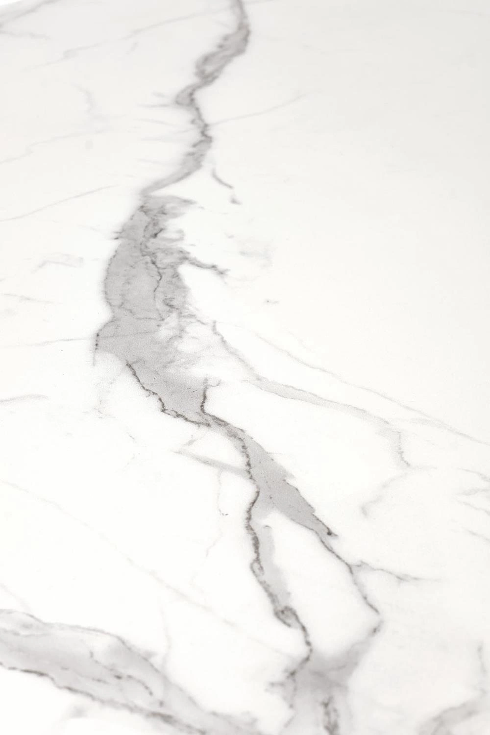 Deska stolu byla vyrobena z keramiky, která zaručuje trvanlivost a odolnost proti mechanickému poškození, poškrábání a vysokým teplotám. Deska byla navíc lakována, což umožňuje její snadné udržování v čistotě.Nohy stolu jsou vyrobeny z práškově lakované oceli, která zajišťuje stabilitu a pevnost celé konstrukce. Barevné provedení stolu je bílý mramor na desce a tmavý jasan na hranách, což mu dodává elegantní a moderní vzhled. Nohy stolu jsou černé, což je dokonalá kombinace s ostatními prvky. Stůl Crosser je ideálním řešením pro ty, kteří ocení funkčnost a elegantní design .