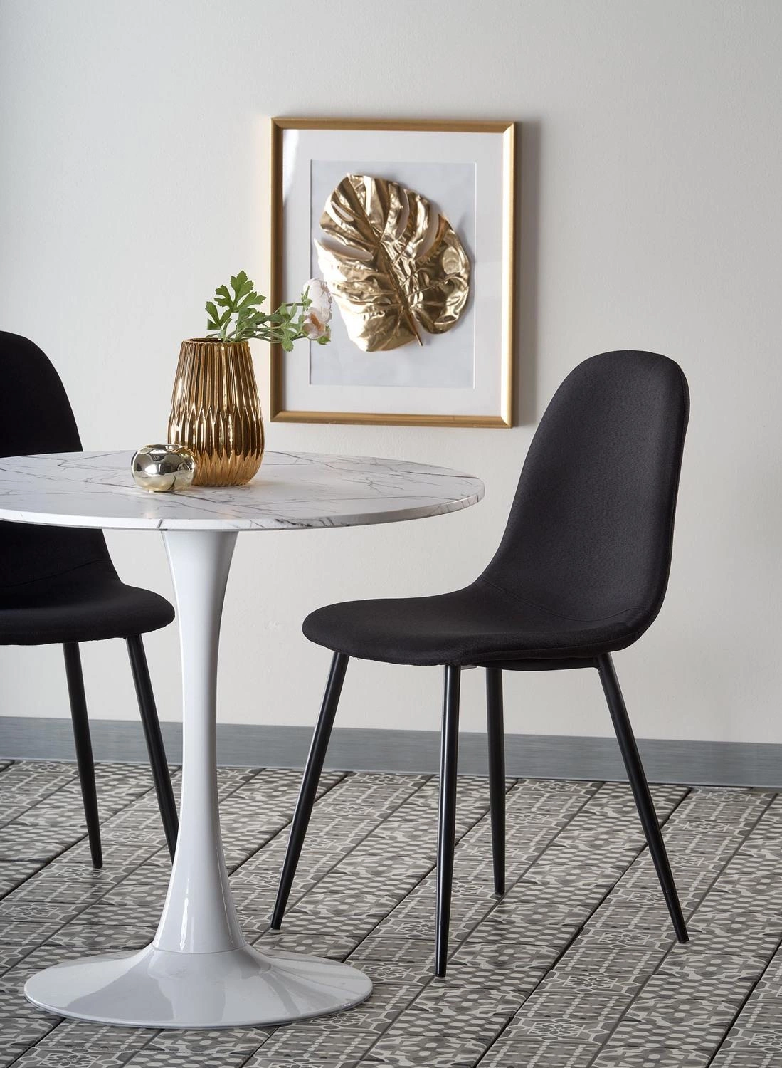 Kulatý tvar desky o průměru 80 cm podporuje přátelskou atmosféru u stolu – nikdo nesedí „na rohu“ a konverzace plyne přirozeně. Výška 73 cm umožňuje pohodlné kombinování s různými typy židlí, zatímco kompaktní rozměry dělají ze stolu skvělou volbu do menších jídelen i kuchyňských koutů. Jemný mramorový vzor a bílá základna zaručují, že stůl Verden snadno sladíte jak se světlými, tak kontrastními doplňky.