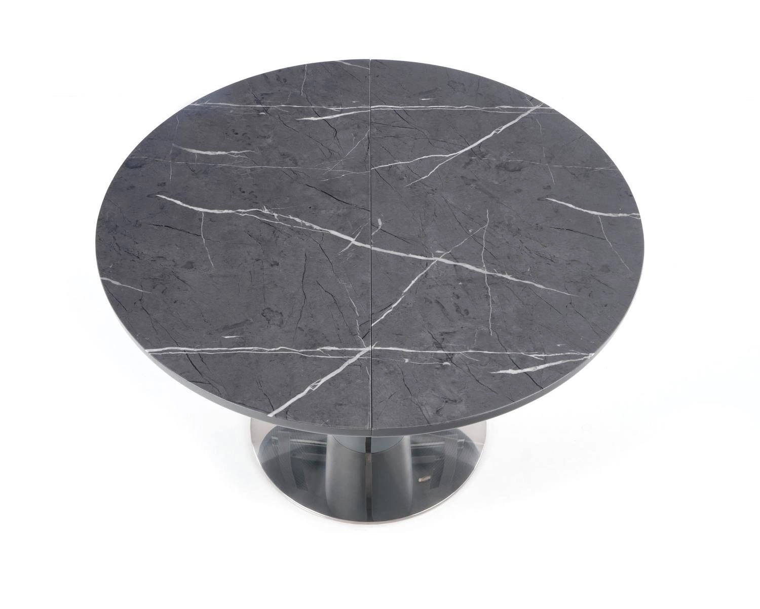 Deska stolu zlakované MDF desky a skla v barvě popelavého mramoru dodává stolu šik a eleganci, zatímco tmavé popelavé nohy znerezovéoceli zajišťují stabilitu a odolnost. Velikost stolu umožňuje pohodlné usazení až 8 osob, takže je ideální volbou pro rodinné večeře nebo večírky s přáteli. Rozkládací stůl je také ideálním řešením pro ty, kteří si ve své domácnosti cení místa.