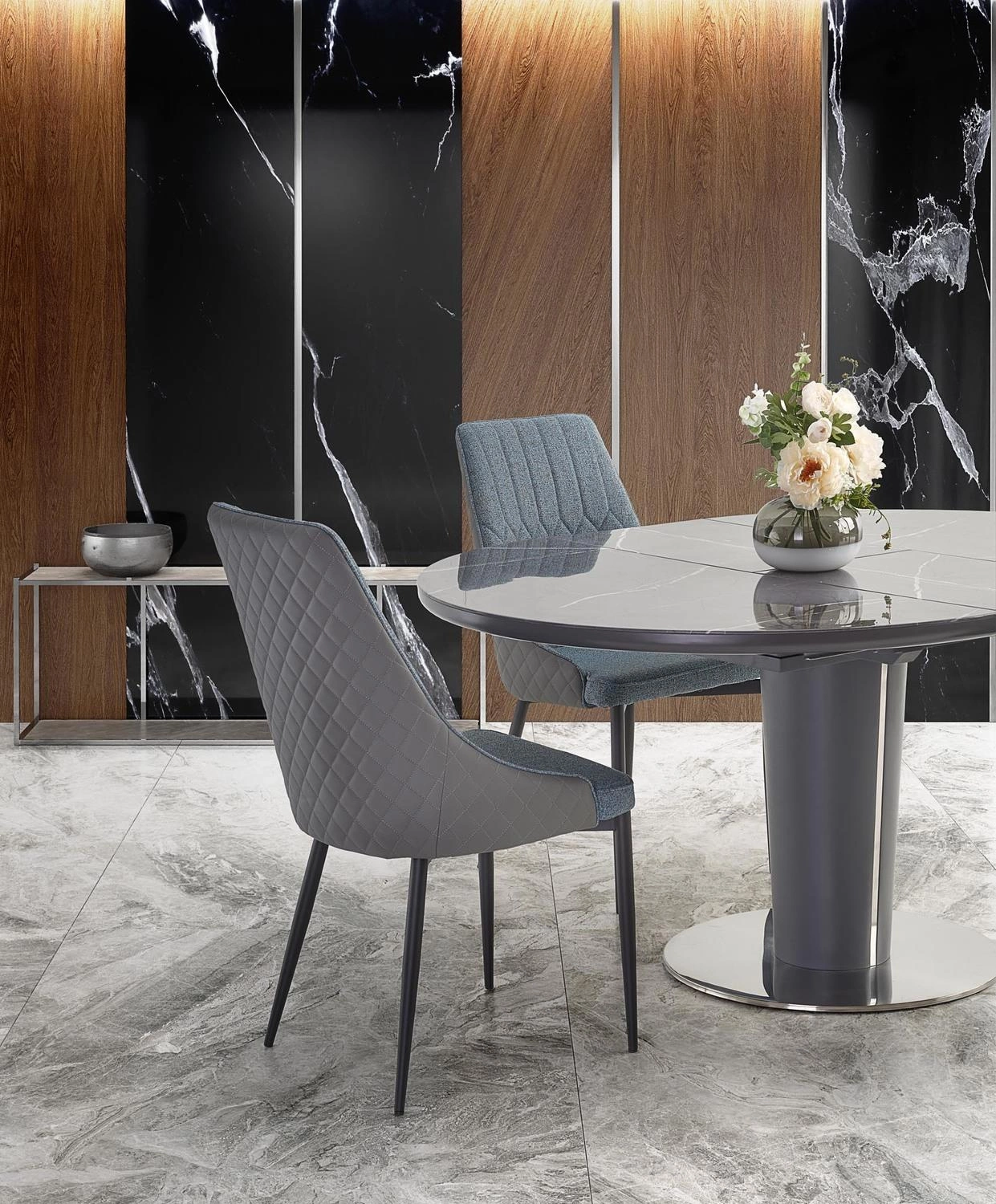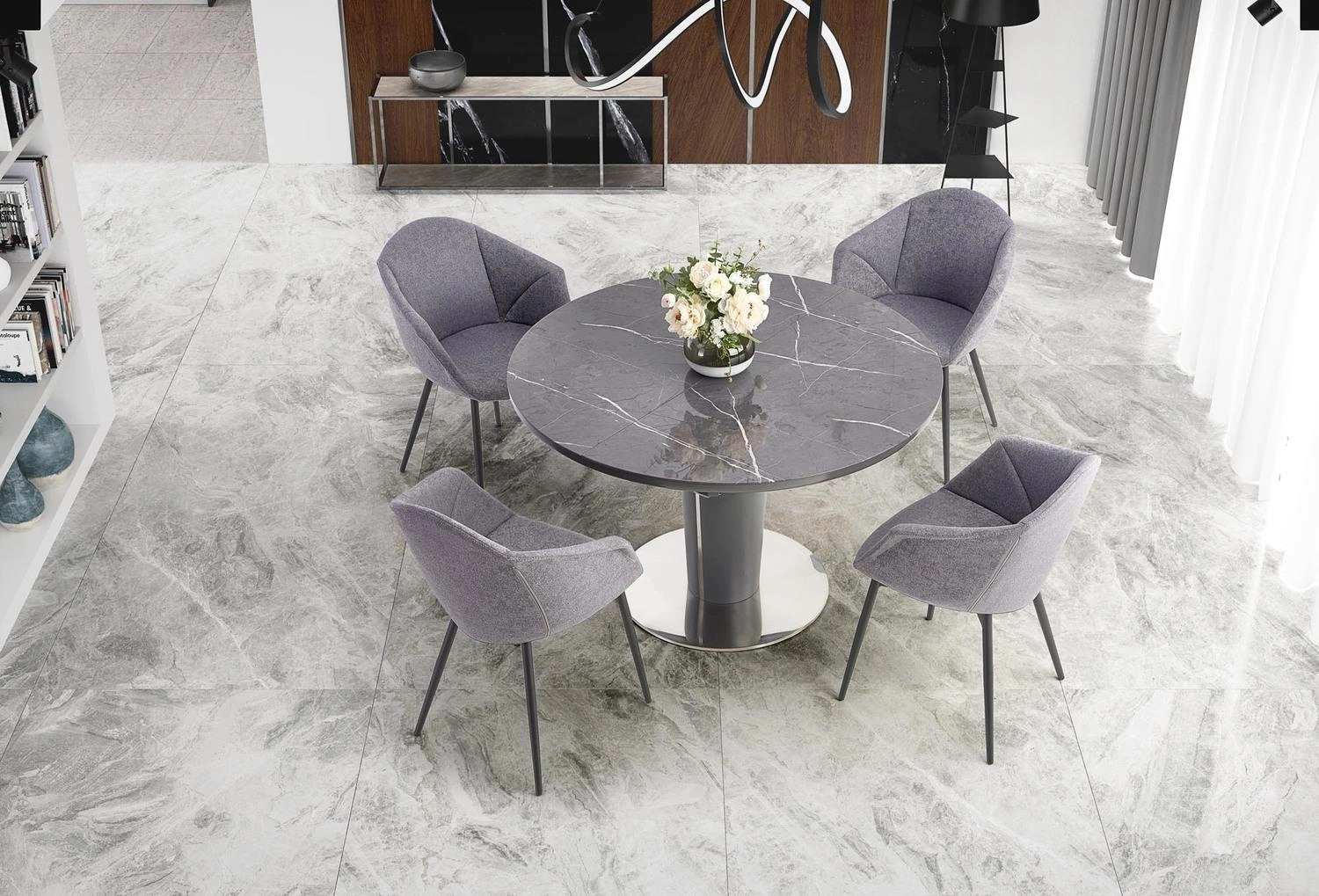 Cardo Intesi okouzlí moderními liniemi a jemným šedým odstínem, takže jej snadno sladíte s interiéry v duchu současného minimalismu. Skleněná a MDF deska efektně odráží světlo, dodává prostoru eleganci a vzdušnost. Tato forma zajišťuje, že rozkládací kulatý stůl skvěle vynikne jak ve světlé, tak i v barevně výrazné jídelně a stane se centrálním místem společných jídel.