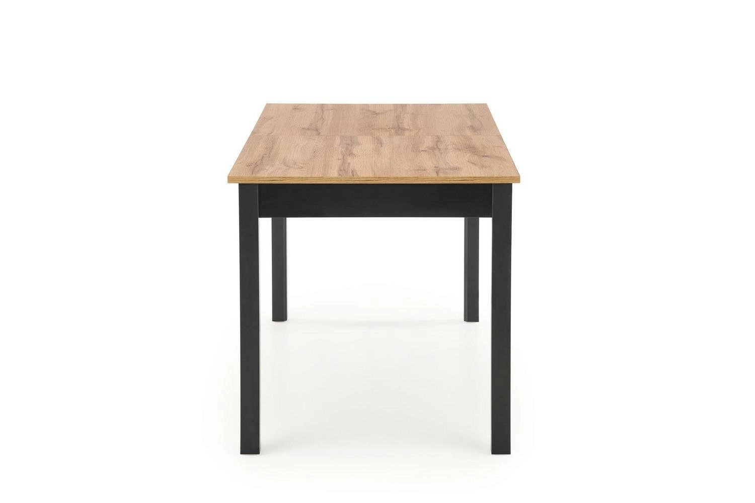 Rozkládací jídelní stůl Regie od značky Intesi je moderní loftový nábytek, který stylově spojuje desku v dekoru dub wotan s černou kovovou podnoží na čtyřech nohách. Díky rozkládací funkci můžete délku stolu jednoduše nastavit od 124 do 168 cm, což umožňuje snadné přizpůsobení počtu hostů i každodenním potřebám. Optimální výška 75 cm a hloubka 74 cm dělají z modelu Regie ideální volbu do jídelny – kombinuje praktičnost s výrazným designem.
