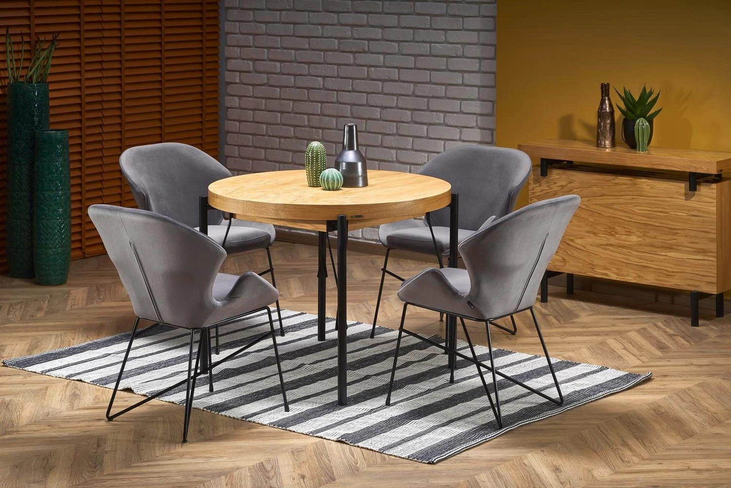 • Kulatá, rozkládací deska – pohodlná komunikace u stolu a maximální komfort sezení