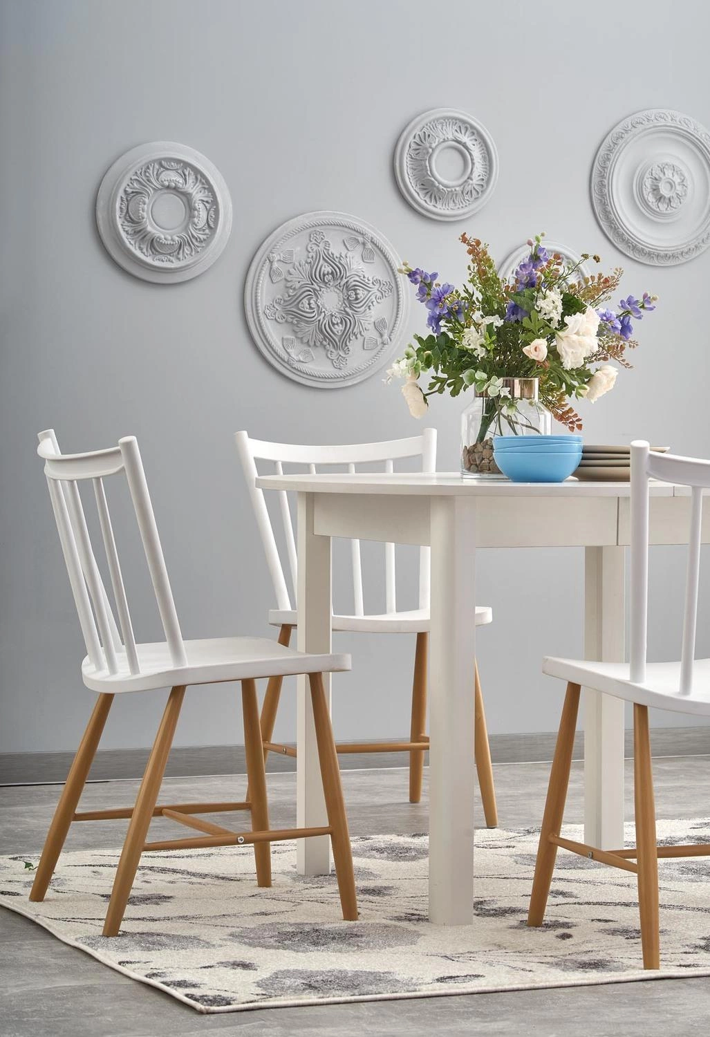 • Bílý kulatý stůl – prosvětluje interiér a dodává mu moderní vzhled