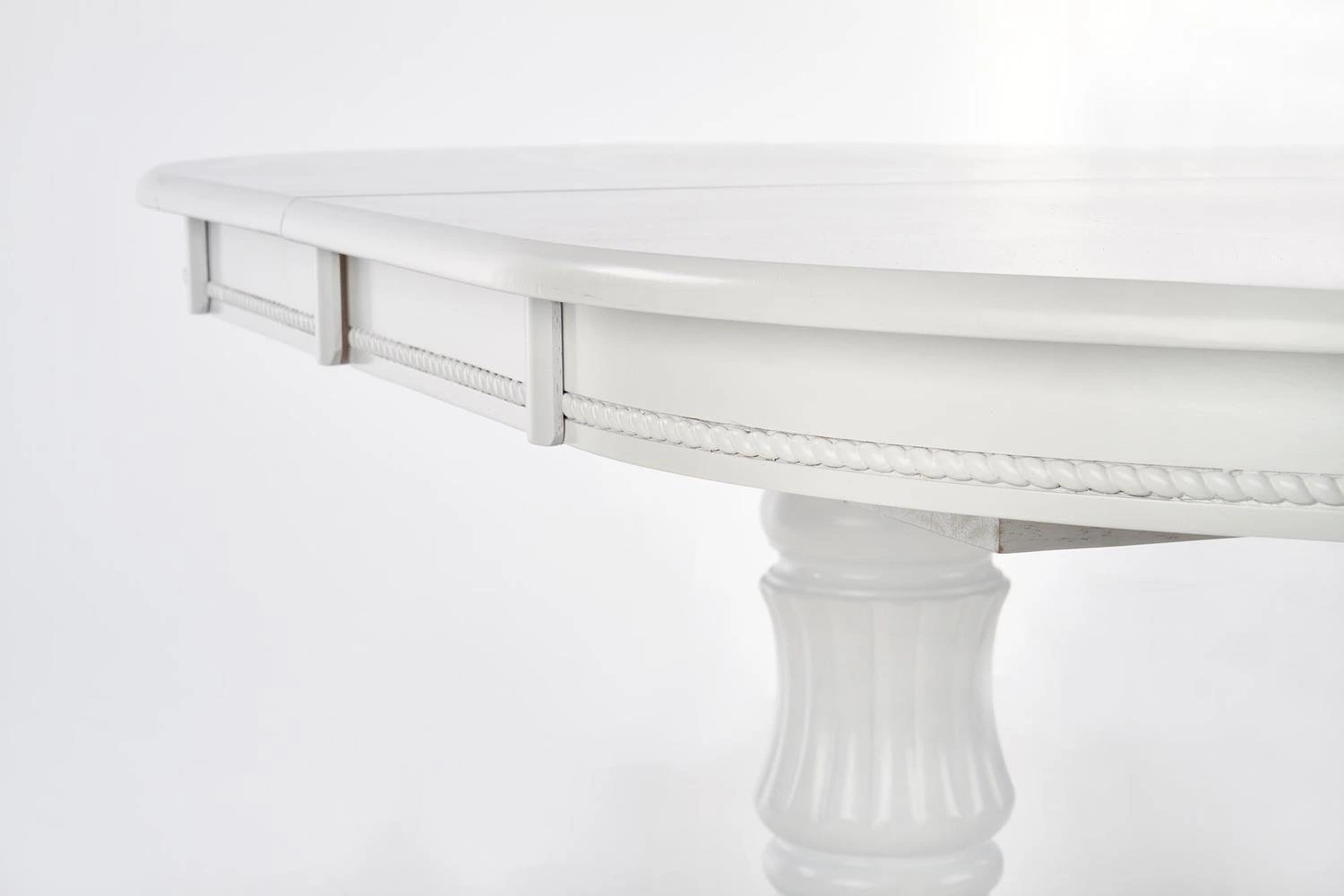 Kulatý rozkládací stůl Richard 2 zaujme jednoduchostí a jemností, které dokonale odpovídají aktuálním trendům v bydlení. Hladká bílá deska v kombinaci s přírodními dřevěnými nohami tvoří moderní a elegantní prvek v každé jídelně. Taková estetika umožňuje snadné sladění stolu s různými typy interiérů – od minimalistických až po glamour, vždy přidává prostoru lehkost a nadčasový vzhled.