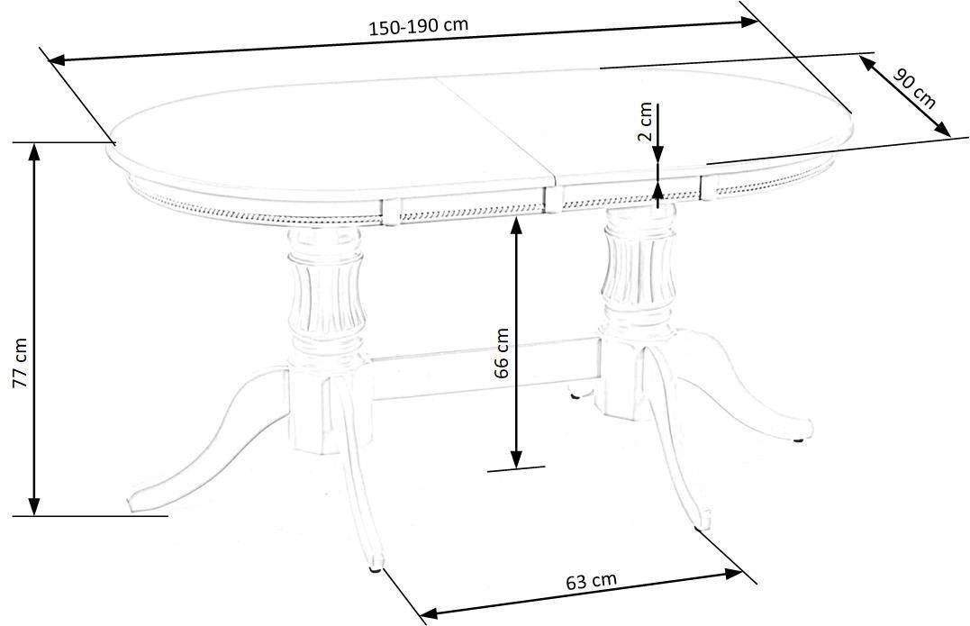Deska z MDF je nejen odolná, ale i snadno udržovatelná – k odstranění nečistot stačí vlhký hadřík. Stůl s výškou 77 cm bez problémů ladí s většinou běžně dostupných židlí, což zaručuje pohodlné používání každý den. Konstrukce na pevných dřevěných nohách poskytuje stabilitu i při maximálním rozložení, což oceníte zejména při větších setkáních a rodinných večeřích.