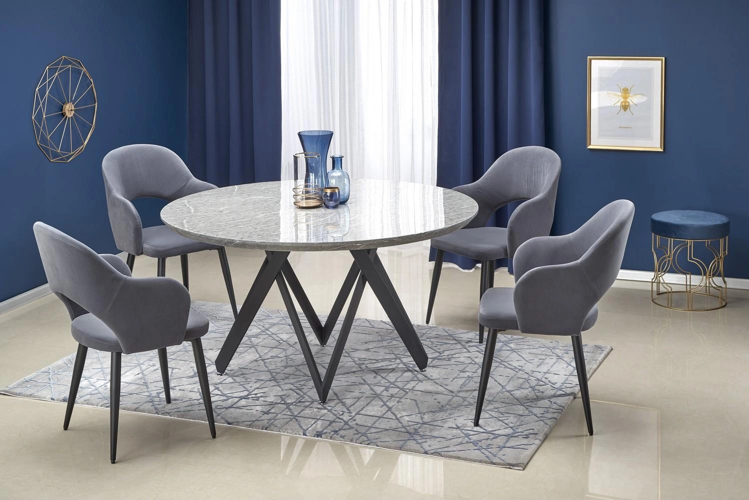 Deska stolu Misto je vyrobena z materiálu imitujícího přírodní šedý mramor, což zaručuje snadnou údržbu a vysokou odolnost vůči každodennímu znečištění. Černé kovové nohy nejen že zajišťují stabilitu konstrukce, ale dodávají celku i elegantní, moderní vzhled. Toto spojení zaručuje, že stůl bude skvěle fungovat i v intenzivně využívaných interiérech a zachová si svůj atraktivní vzhled po mnoho let.