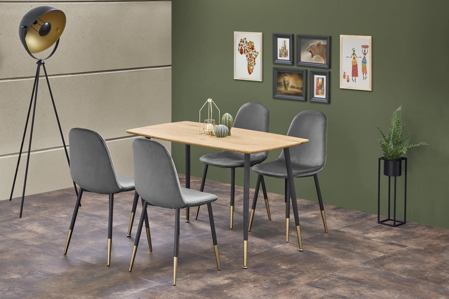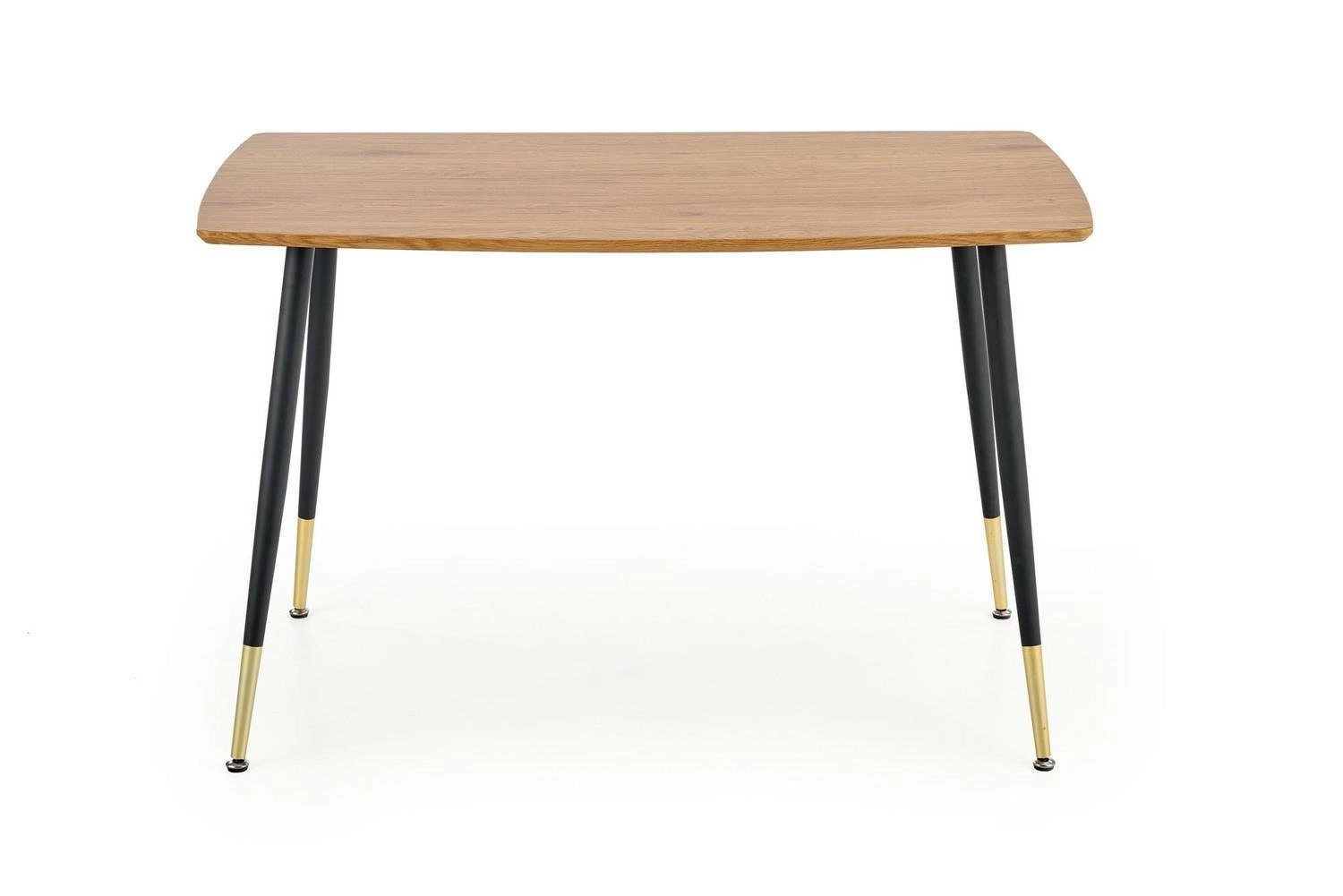 Jídelní stůl Riptos 120x70 cm od značky Intesi je moderní kus nábytku, který spojuje elegantní desku v dekoru dub zlatý s výraznými černými kovovými nohami. Díky svým kompaktním rozměrům (120×70×76 cm) se skvěle hodí jak do klasické jídelny, tak i do otevřené kuchyně či menšího obývacího pokoje. Pevná konstrukce bez rozkládání zajišťuje stabilitu a pohodlí při každodenním používání, a univerzální design umožňuje snadno kombinovat stůl s různými typy židlí a doplňků.