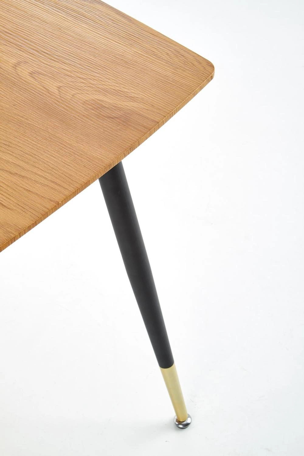 Deska imitující přírodní dub zlatý je nejen odolná vůči každodennímu používání, ale také velmi snadná na údržbu – stačí ji otřít vlhkým hadříkem. Stabilní černé kovové nohy zajišťují dlouhou životnost a spolehlivost i při intenzivním používání. Precizní zpracování dělá z tohoto stolu spolehlivou volbu pro každodenní využití.