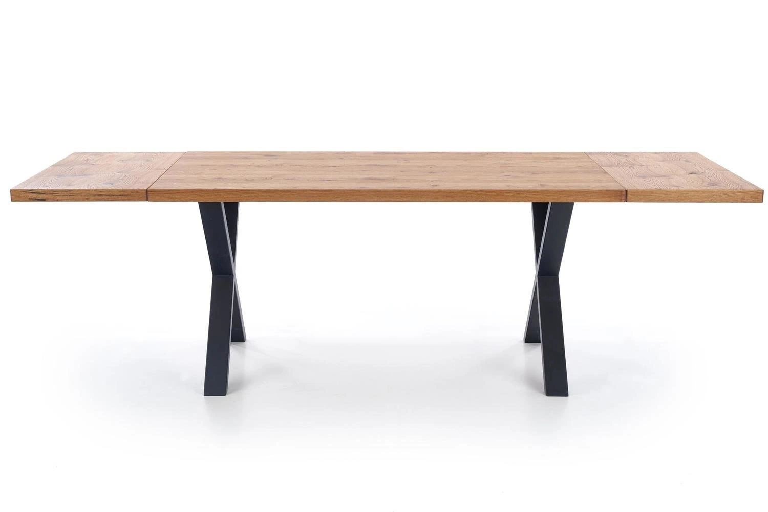 Rozkládací stůl Rivier od značky Intesi je ideální volbou pro ty, kteří oceňují moderní design, funkčnost a dlouhou životnost. Deska stolu o šířce 160 cm je vyrobena z přírodní dubové dýhy v odstínu dub artisan a celek doplňují robustní černé kovové nohy. Tento model umožňuje snadno rozšířit jídelní prostor díky rozkládací konstrukci – perfektně se hodí jak do každodenní jídelny, tak i pro rodinné oslavy.