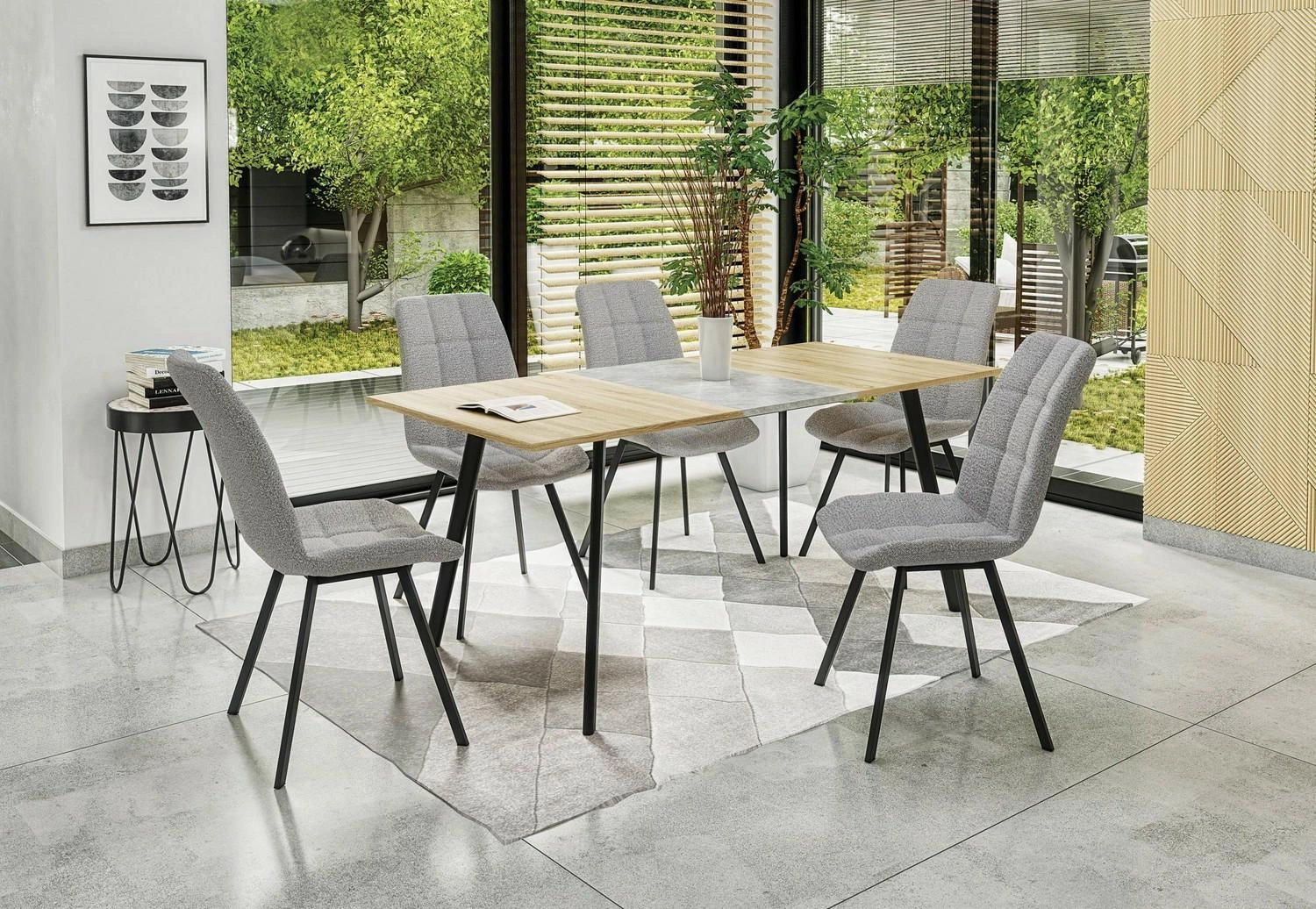 - Moderní design – kombinace dubu sonoma a černých nohou se hodí do stylových jídelen i obývacích pokojů
