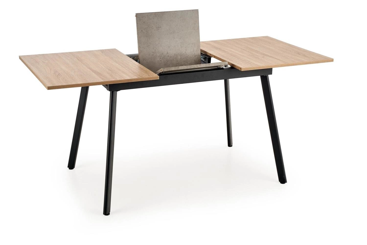 Rozkládací stůl Bonal byl navržen pro interiéry, kde záleží na minimalistickém designu a výrazných detailech. Kontrast přírodního odstínu dub sonoma s černými nohami odkazuje na moderní a industriální styl, čímž podtrhuje jedinečný charakter prostoru. Kovová konstrukce zaručuje stabilitu a dlouhou životnost, zatímco hladký povrch desky umožňuje snadnou údržbu – stačí otřít vlhkým hadříkem.