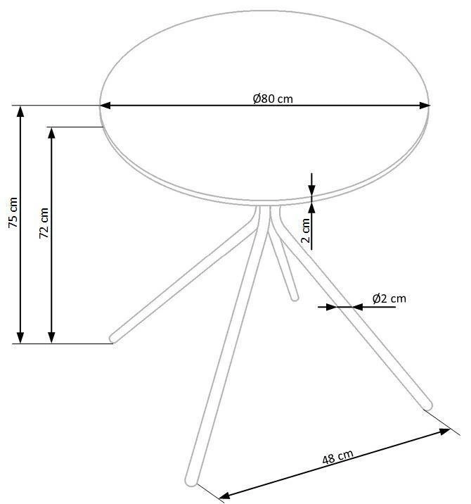 Kulatý tvar stolu umožňuje snadné rozmístění i v omezeném prostoru. Díky průměru 80 cm pohodlně usadíte 3 až 4 osoby, což oceníte při každodenním stolování i večerních rozhovorech u kávy. Absence ostrých hran zvyšuje bezpečnost, zejména v domácnostech s dětmi. Konstrukce na pevných kovových nohách zaručuje stabilitu a dlouhou životnost nábytku.